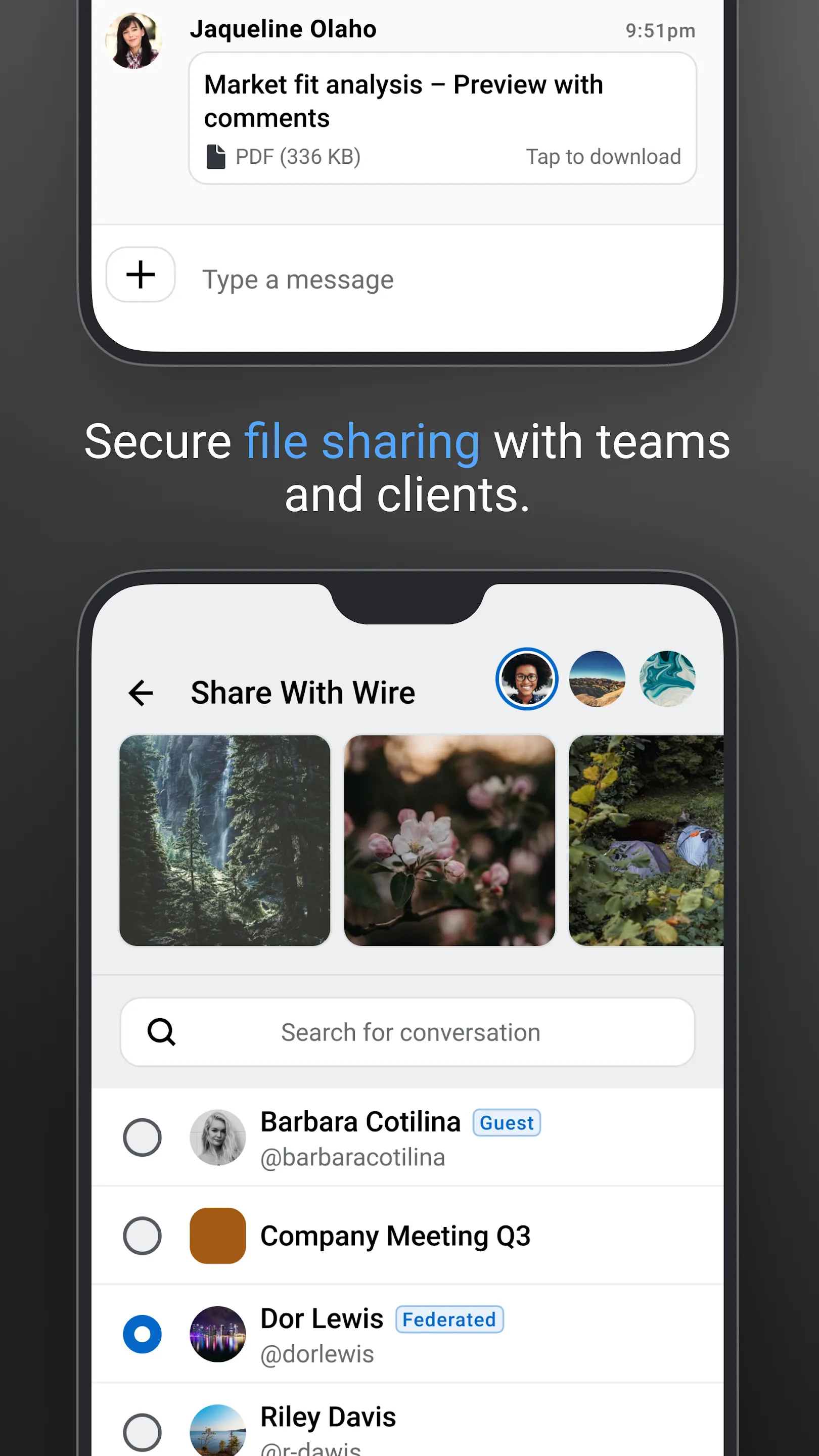 Wire is the most secure collaboration platform. We increase the productivity in your team while keeping your information private. Wire allows your team to communicate and share information easily and securely - messages, files, conference calls or private conversations - always in context. – Communicate with your teams through private or group conversations – Share and collaborate with files, documents, links with reactions – Press the one-click conference call button and your voice or video meetings starts on time – Invite partners, customers and suppliers to collaborate through the unique guest rooms...