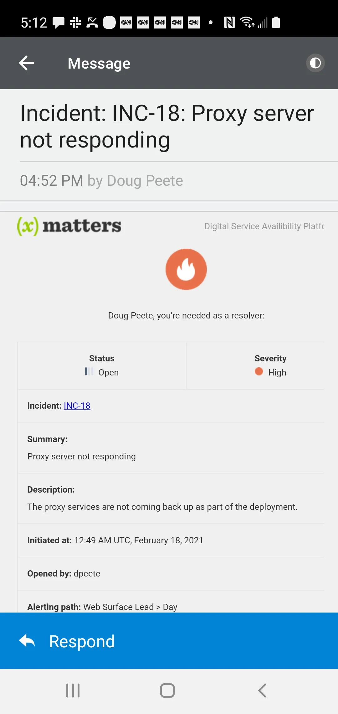 xMatters is a service reliability platform that helps DevOps, SREs, and operations teams automate workflows, ensure infrastructure and applications are always working, and rapidly deliver products at scale. With the xMatters Android app, you get actionable alerts with full context for every situation that let you quickly assess incidents and launch response workflows at the touch of a button. The xMatters app is a “pocket command center” that allows you to: * Send and receive alerts with full incident context * Launch actionable responses and workflows...