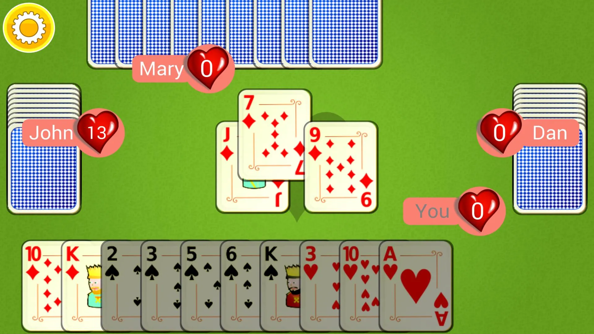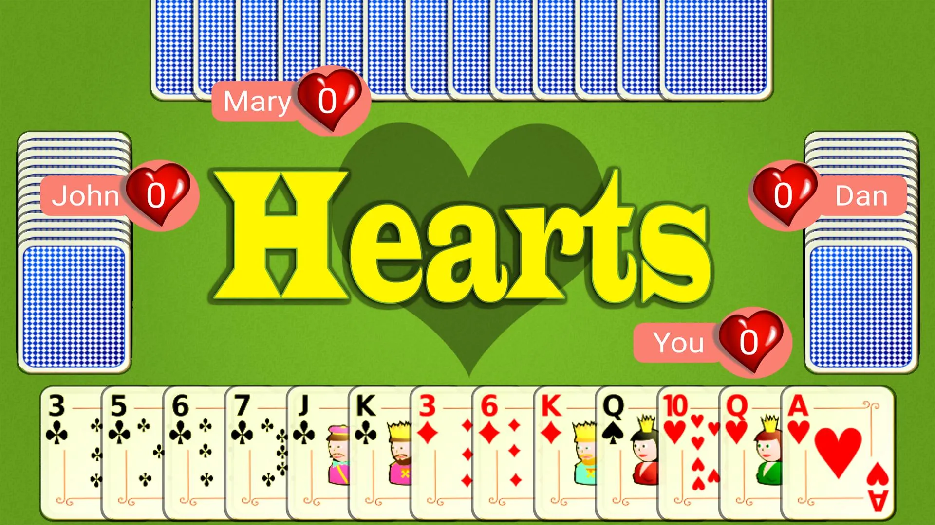 Play a captivating game of Hearts. To win you must avoid getting the scoring cards. Or you can Shoot the Moon. The game is over when one of the four players gains more or exactly 100 points. You win if you have the smallest score. Though chance is involved you can still make the best of your cards and win. Download and play now! FEATURES - Easy to use and play...