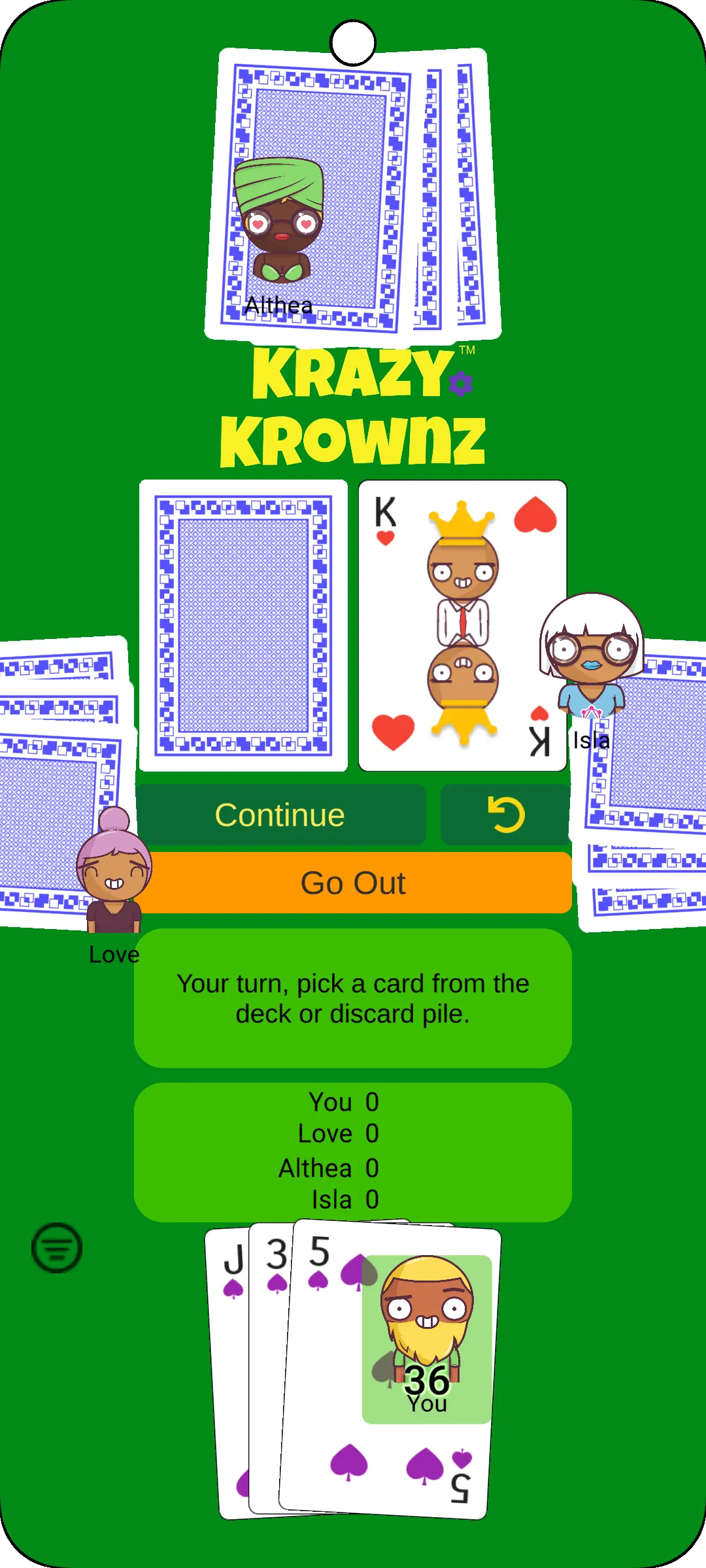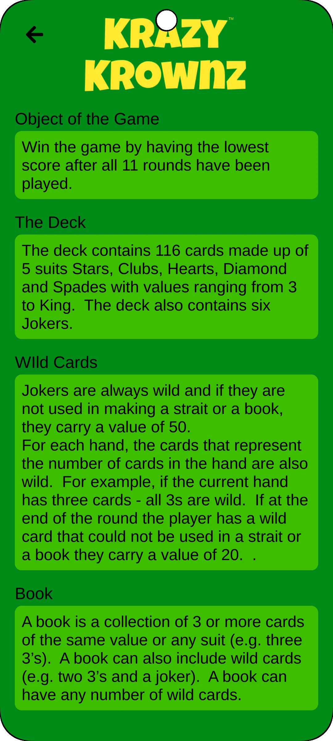 The ultimate family card game! Get ready for hours of fun with Krazy Krownz, the exciting and easy-to-learn card game that is perfect for having some fun when you need it. Based on the beloved card game Rummy, this digital adaptation brings all the thrilling action to your fingertips. Whether you're at home or on the go, Krazy Krownz offers endless entertainment in a beautifully designed app. In Krazy Krownz, players aim to create sets and runs of cards to score points, but with a twist: every hand uses a different number of cards, and the wild card changes each round. It's simple, strategic, and perfect for anyone who loves classic card games with a fresh twist. Features: ...