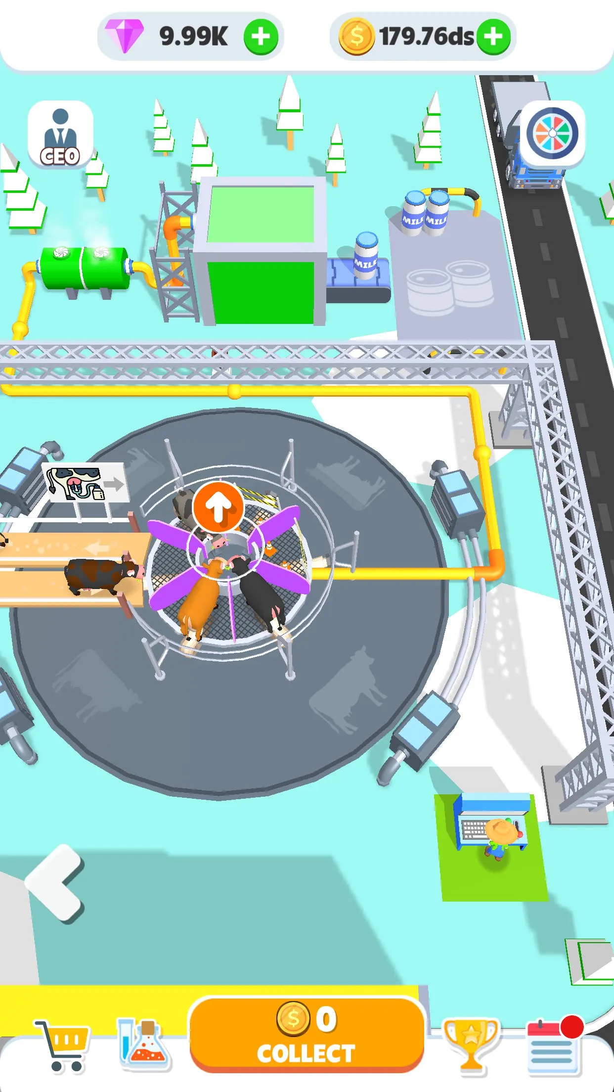 Welcome to Fresh Milk Tycoon, the ultimate idle simulation game! Step into the shoes of a dairy mogul as you manage your very own milk factory. Watch cows enter the circular pen, and strategically position them to maximize milk production. Once all spots are filled, your team will start milking and send the fresh milk through pipes to the bottling machine. Package your products and transport them to the factory for processing. With engaging gameplay and fun mechanics, you’ll build a thriving dai...