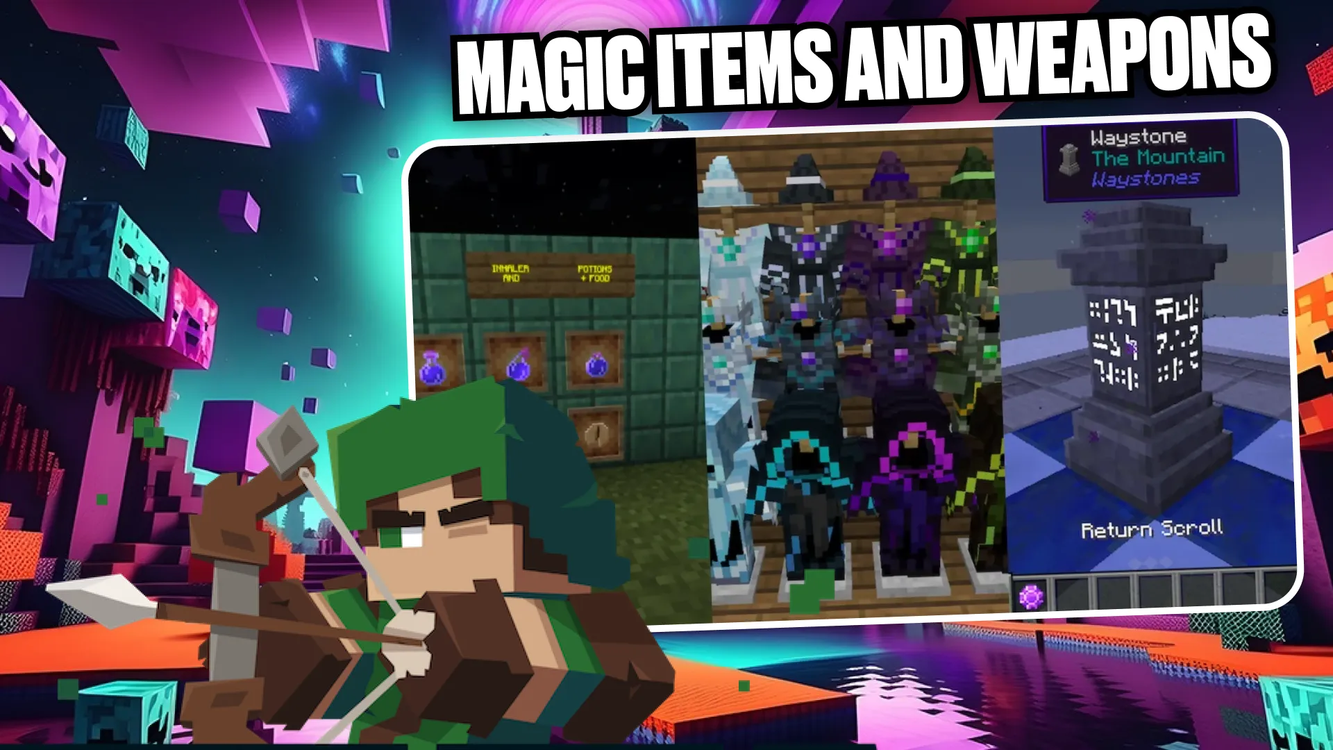 Our team created this application so that you can easily download Magic Mods for Minecraft 2025, in which you can experience the role of a wizard and, with the help of the added staffs, learn power abilities in survival mode. The design of the launcher is done very professionally, so that even the first player who entered the game for the first time could easily download this addon for mcpe Bedrock. We wish you a magical and interesting game with the Magic in Minecraft addon or mod magic Minecraft. Mod magic Minecraft will take you to an amazing world of magical things, where you can meet a wizard, and you can also throw fireballs and everything else that you will be taught in the Magic mod. Craft the world of Hogwarts will be right in your game, because you will literally become a wizards who can conjure any staff. Magic Mods for Minecraft 2025 adds many interesting craft staffs that you can use as weapons or for other purposes, it's up to you. You will need to constantly develop your power abilities in order to improve and not stand still in development, in the survival mode mcpe Bedrock. ...