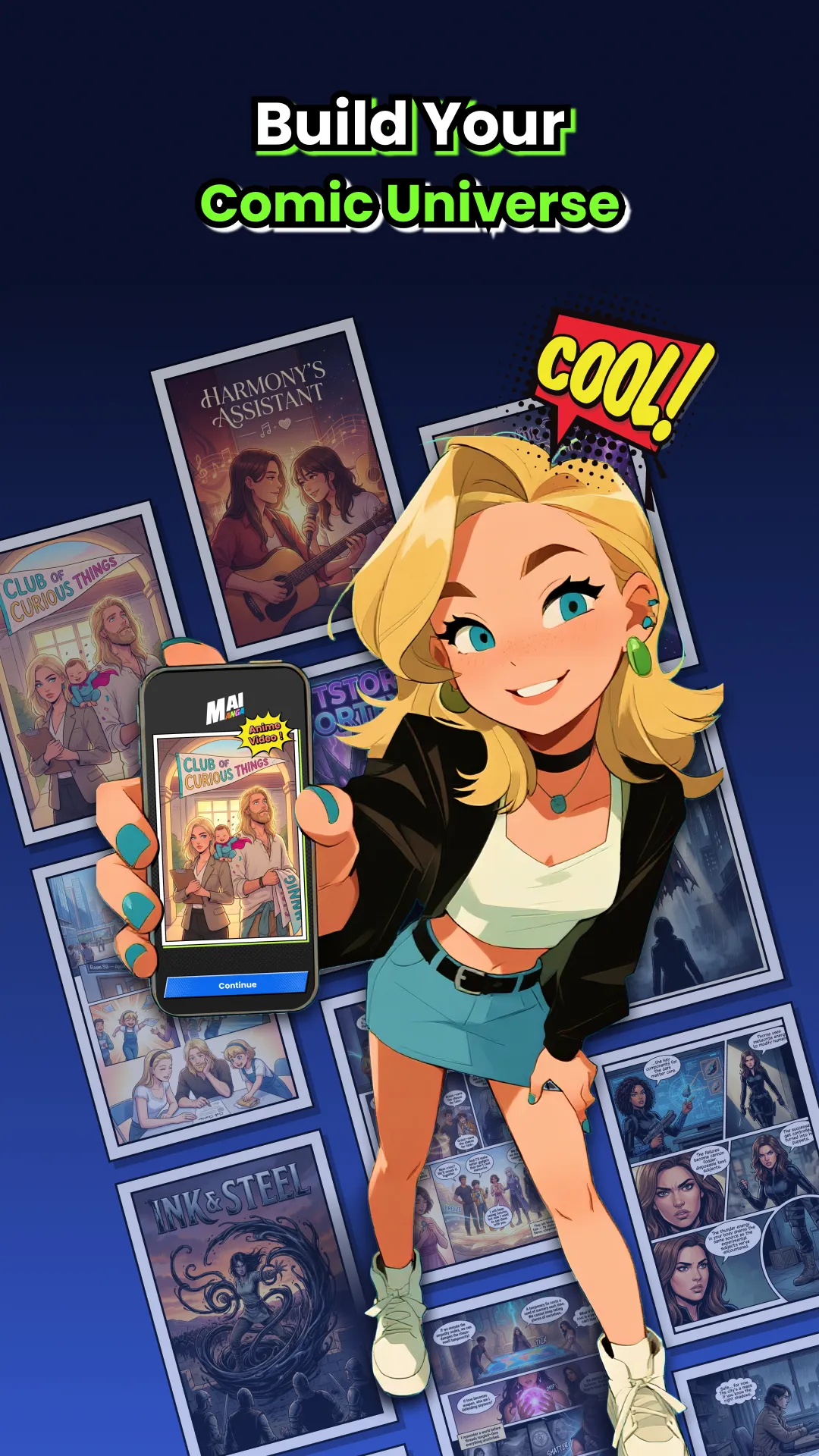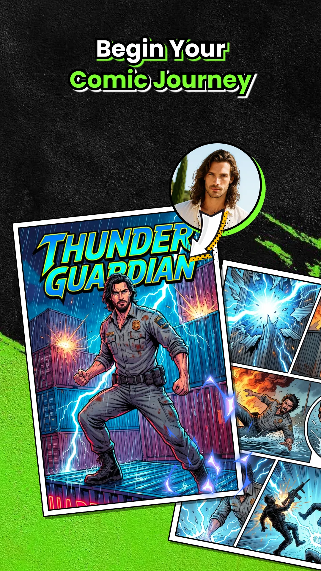 Manga AI - Comic book maker here for you to create your own manga & comics with ease. Comic Maker: Manga, Manhwa & Webtoon is an AI-powered comic creation app that turns your ideas into fully illustrated digital comics. Simply write a short prompt and upload a face photo—AI will transform your appearance into a comic-style character and generate a series of comic pages with you as the main character. No drawing skills required. Just describe your story and let AI create consistent characters, scenes, and panels in manga, manhwa, or webtoon styles. AI-Powered Comic Generator: Simply enter your story idea or a scene description, and our advanced AI will generate high-quality comic panels and a coherent narrative sequence for you. From thrilling action scenes to delicate romantic moments, everything is under your control. ...