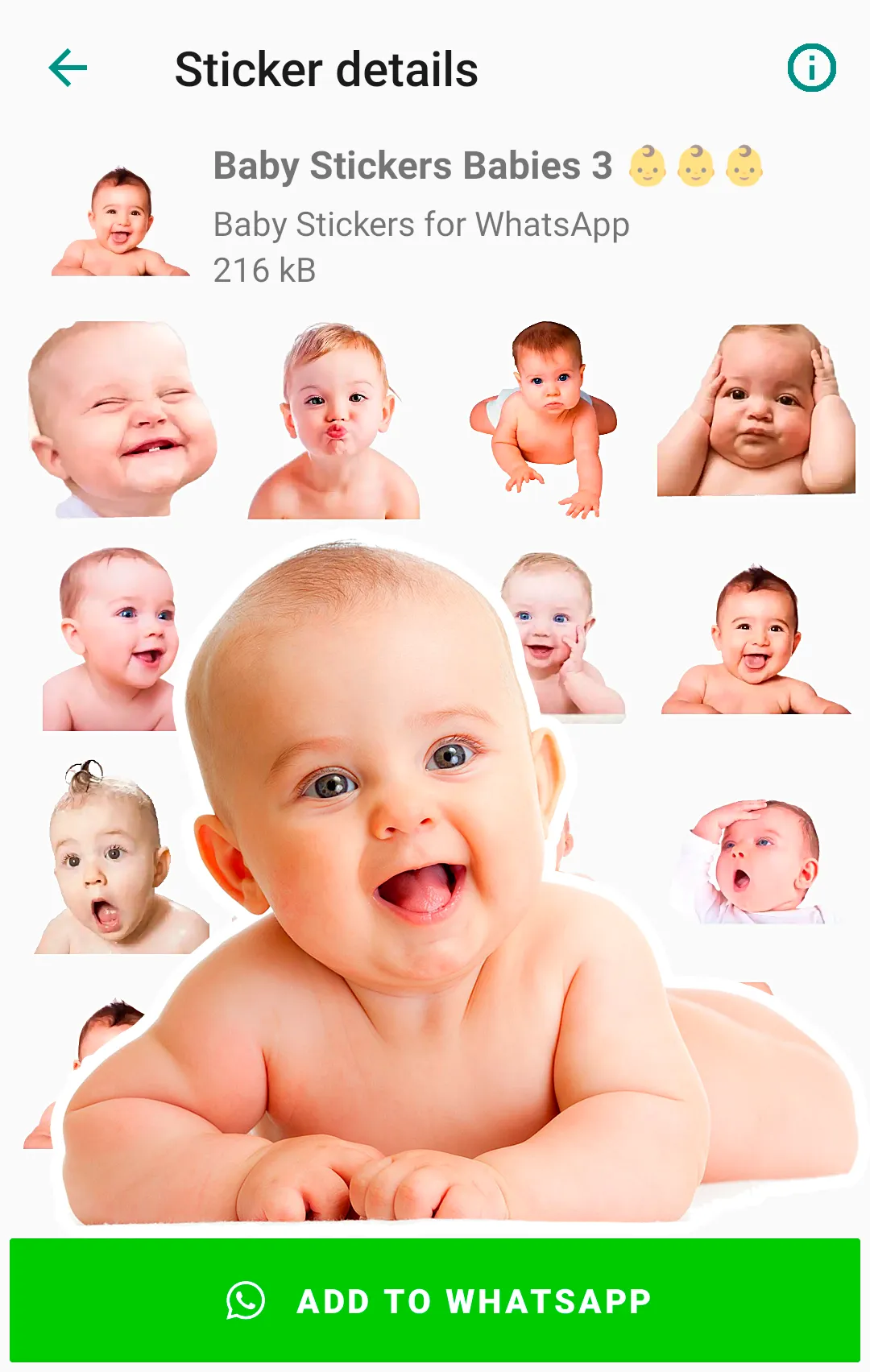 Enjoy the funny kids and cute babies stickers for WhatsApp animated! This application has the best baby stickers for WhatsApp! You can share and send child stickers, super cute babies stickers and more in your chats and messages. Download cute baby stickers for WhatsApp, add a new sticker pack of grimacing children, babies pouting, children sending a kiss, funny baby memes stickers, lovely stickers of babies to express your emotions and have fun! ...