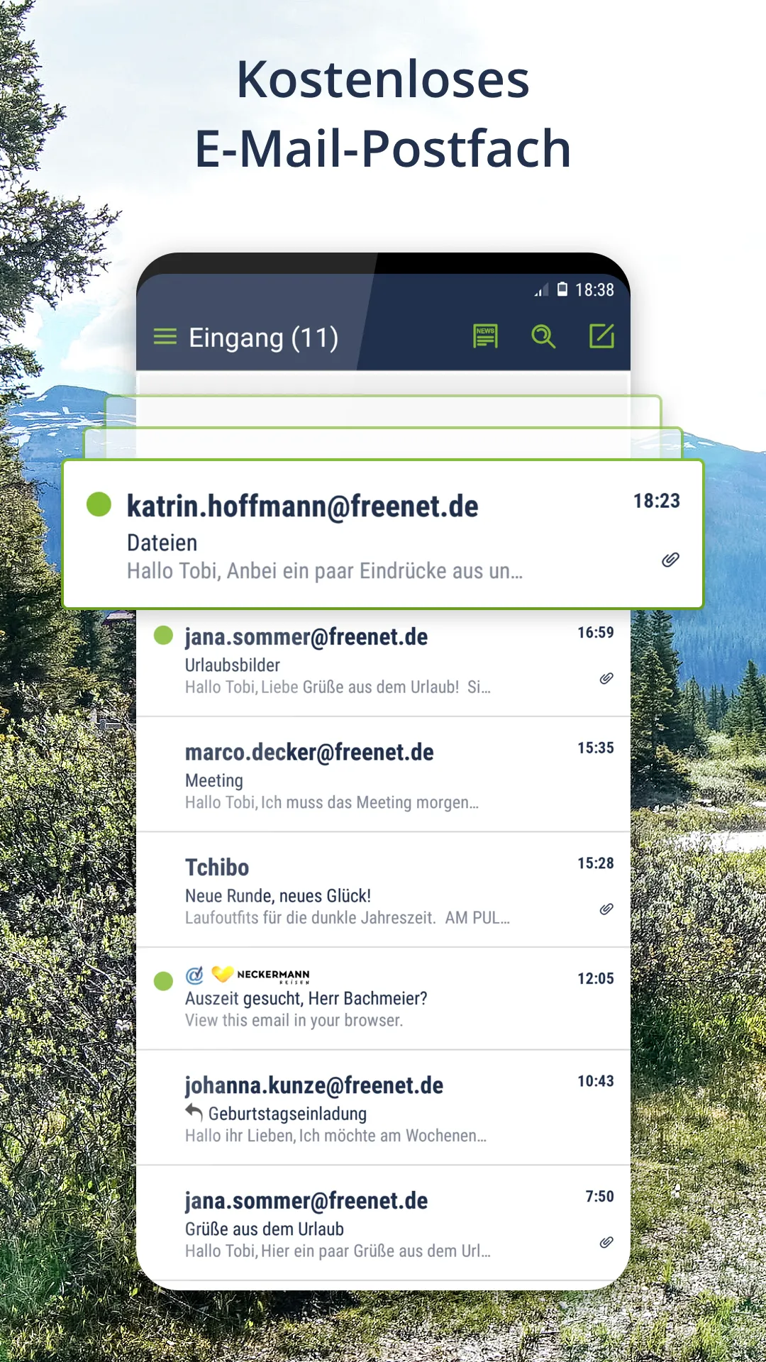 Freenet Mail allows you free, safe and comfortable to write anywhere an email and send and receive e-mails and read from. Take advantage of all the important functions of freenet mail quickly and reliably on your Android device: - Whether on your smartphone or tablet - comfortably read on the go e-mails and write emails - Use multiple e-mail accounts in one app - add addresses from other email providers such as add web.de, gmx.de and google - Notification (push) for new e-mails...