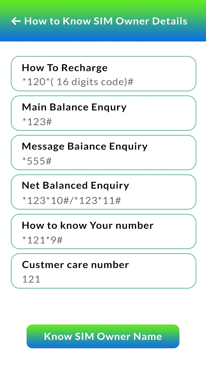 Do you wants to know Sim Card Owner Details by just entering sim card number, than this is the perfect app for you. How to Know SIM Owner Details & Sim Card Details application helps the Indian prepaid telecom users to find any numbers for specific operations like Recharge, Show Main Balance, Read Messages, Internet Balance enquiry, Finding owner number and Customer care number. This app supports most of indian telecom operators like Airtel, Idea, Vodafone, Tata, Jio and BSNL. With this app You can Get SIM Details like Operator name, SIM IMSI, SIM Status, Mobile Data Status, Roaming Information, Country ISO by visiting link given inside the app. ...