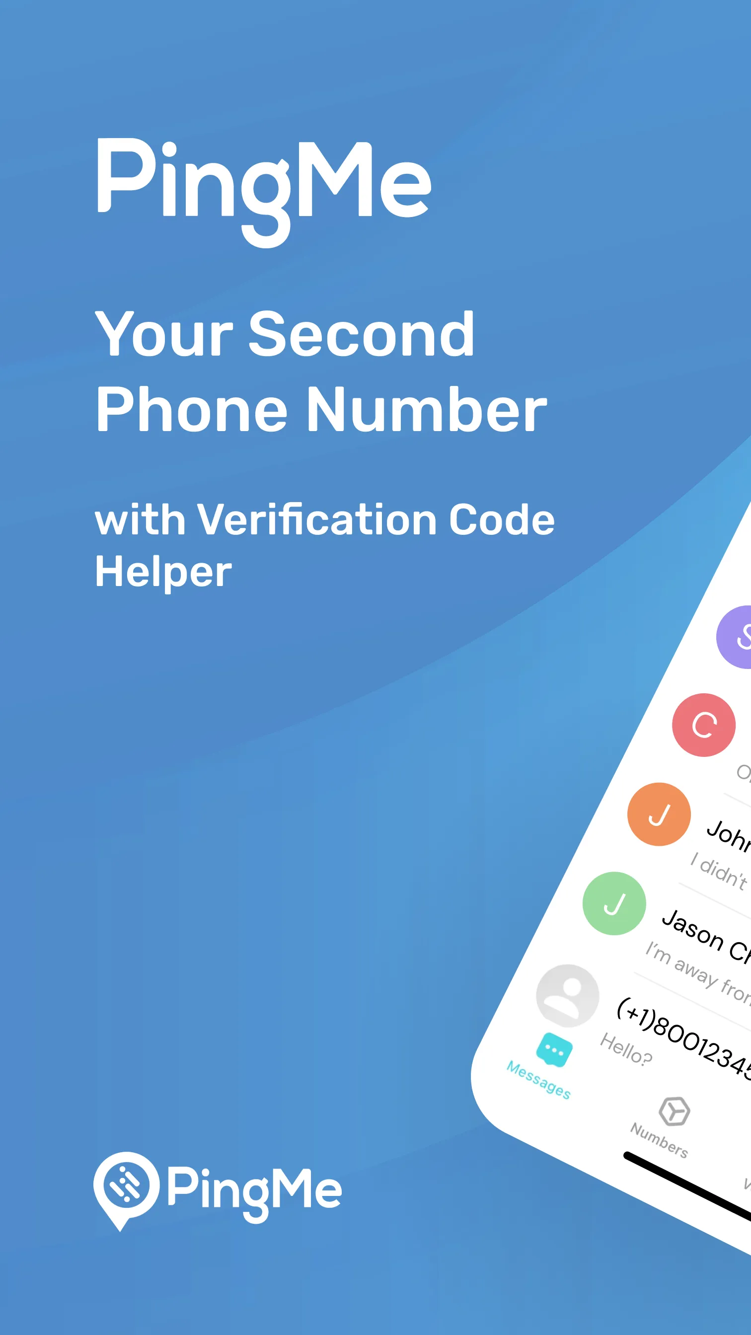 == Easily bypass SMS verification codes and create as many web/app accounts as you need using our SMS Verification Code Helper. == Experience our new local US cell phone plan! Get a reliable US number with flexible eSIM or SIM options, perfect for receiving verification codes across multiple platforms worldwide. == Call anyone globally using your virtual temporary number. Whether you're running a business or traveling the world, enjoy uninterrupted connectivity! Make affordable international calls and manage contacts with a second phone number. Choose from international numbers in dozens of destinations and connect globally. Try PingMe today! ...