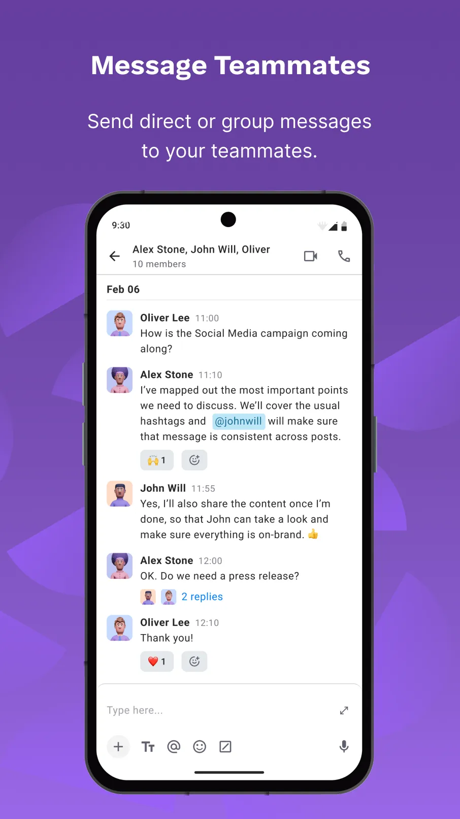 Pumble is a free business messaging and work communication app that allows you to: • Send direct and group messages to teammates • Create public and private channels to organize and discuss work topics • Create meeting links where you can talk to others • Have unlimited access to history of all your messages • Invite an unlimited number of users • Send audio and video messages • Upload and share files and links • Available across devices (mobile, desktop, web) Learn more: https://pumble.com