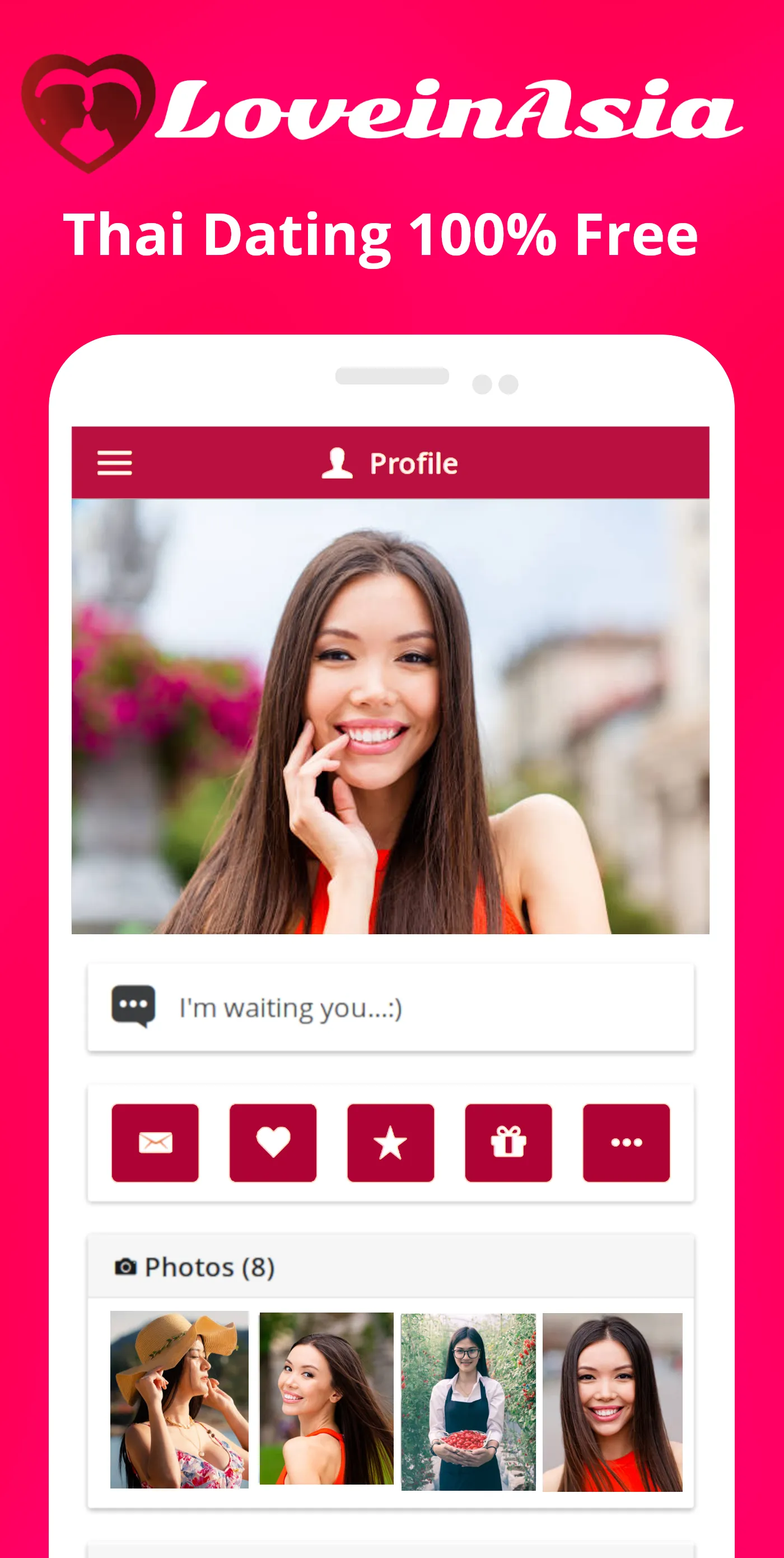 LoveinAsia : The best free asian dating app to find your love in asia. Finally a free application for anyone who wants to date Asian people! LoveinAsia, it's Asian men and women from all over the world, and they have only one desire: to find love in this app. Take a look at our application and discover thousands of asian women and men! The particularity of our application is that it is 100% free, no fees, no credit card required. All you have to do is register and enjoy the rest! Another special feature is our integrated translator. We know that many people find it difficult to speak a language other than their mother tongue. No problem, our translator will make communication very easy. Say goodbye to language and distance barriers! ...