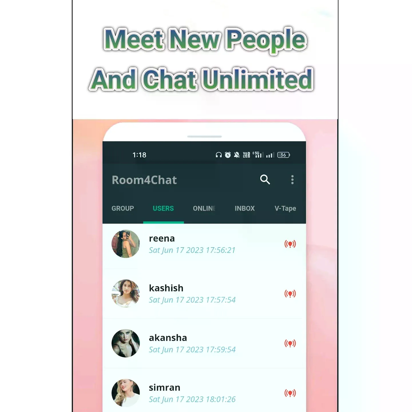 Room4chat is the secure social networking app that prioritises your privacy and safety. Connect with real users, share media, and enjoy unlimited chatting without compromising your data. Main function in Room4chat [ Simple and safe Registration ] Simple and easy login- Easy to sign up, you can choose quick registration, your data is safe here....