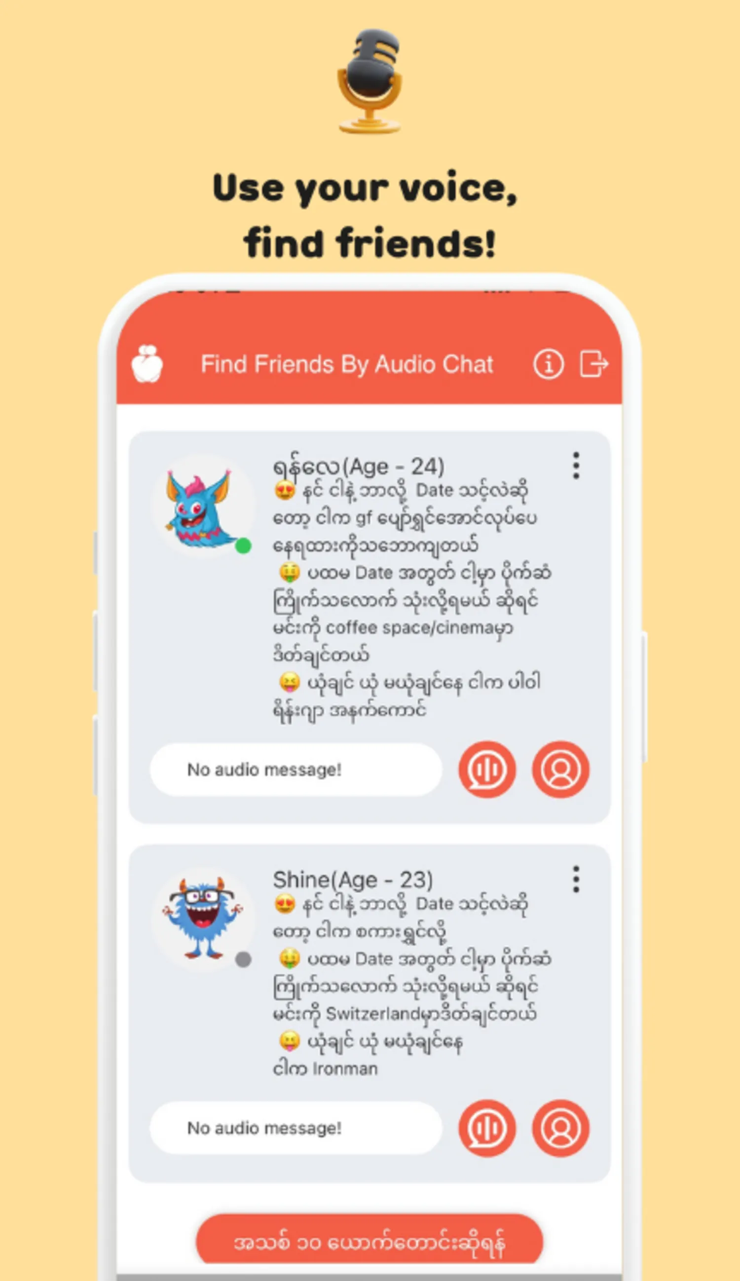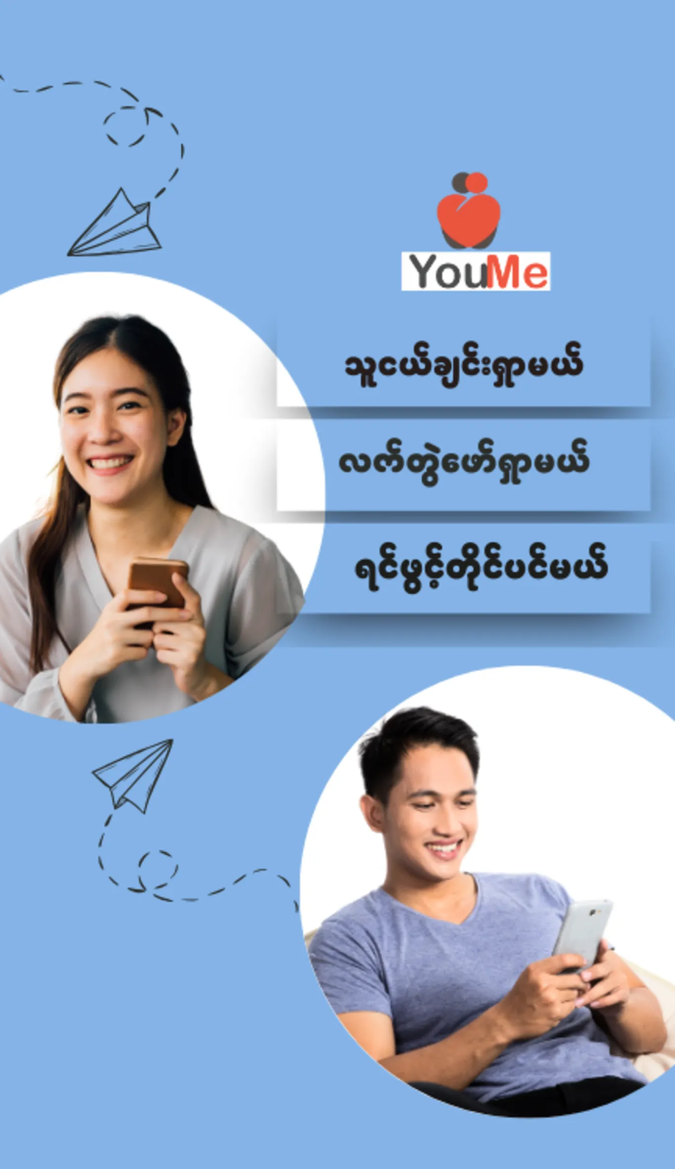 Welcome to YouMe, Myanmar’s leading social dating app designed to connect you with like-minded individuals. Whether you’re looking for meaningful friendships, romantic relationships, or casual conversations, YouMe is here to make your social experience exciting and safe. Our user-friendly interface and advanced matching algorithms ensure you meet compatible matches based on your interests and personality. Privacy and security are our top priorities, with cutting-edge measures to protect your dat...