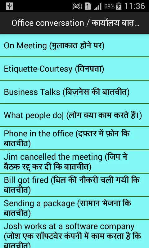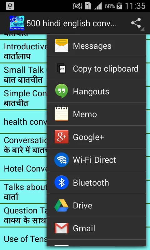 This application helps you to learn the conversation sentence with the help of this application you can easy learn this most famous language.This application includes the heading like- -Dialogue -family,friends conversation. and so many types of conversation between two people and so many others.