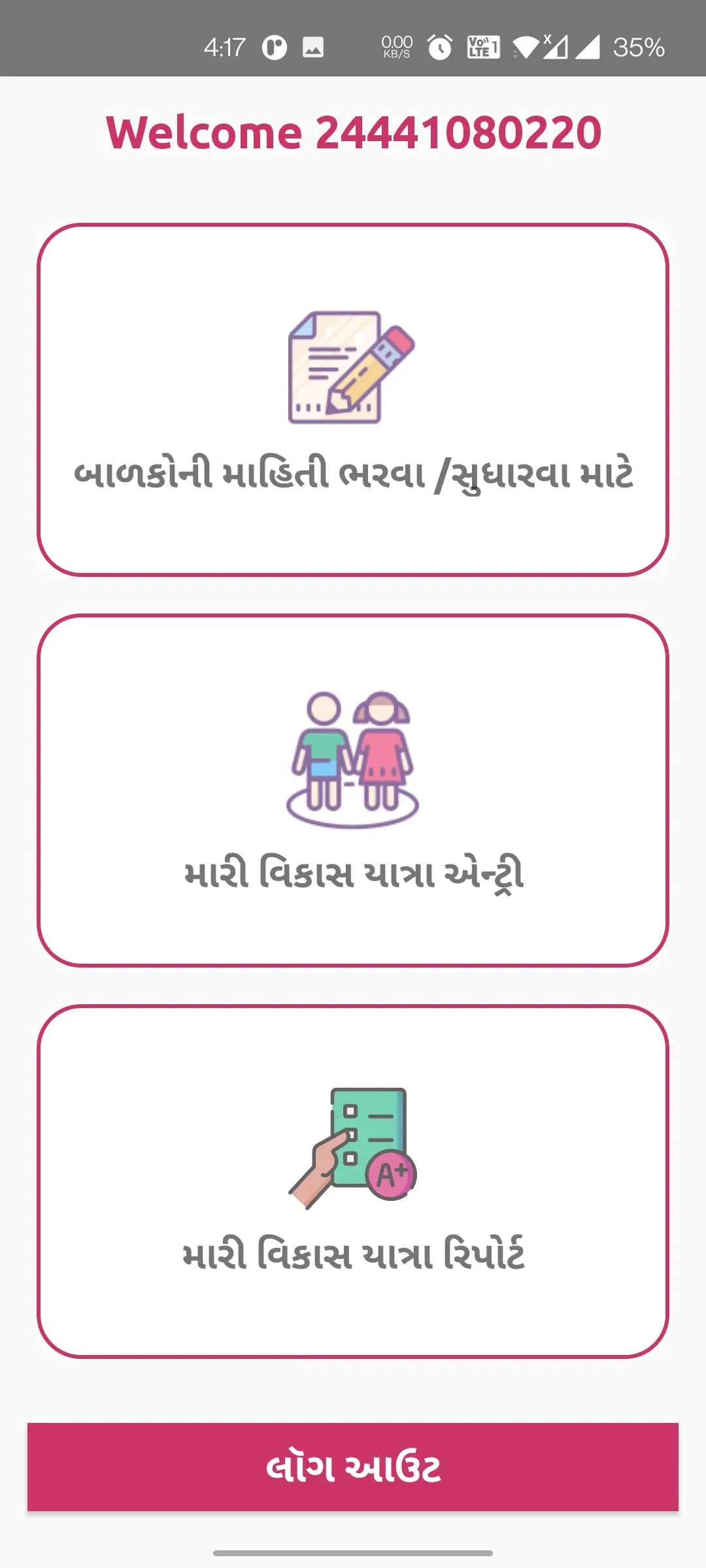 This application will be used to assessed development progress of 3 to 6 years children under the Government Scheme "Mari vikas Yatra" which is implemented by Gujarat Government Department of Women and Child Development, based on the entries system will generate reports indicating development progress under six domains named Physical Development, Mental Development, Creativity Development, Language Development, Social Development, Emotional Development.
