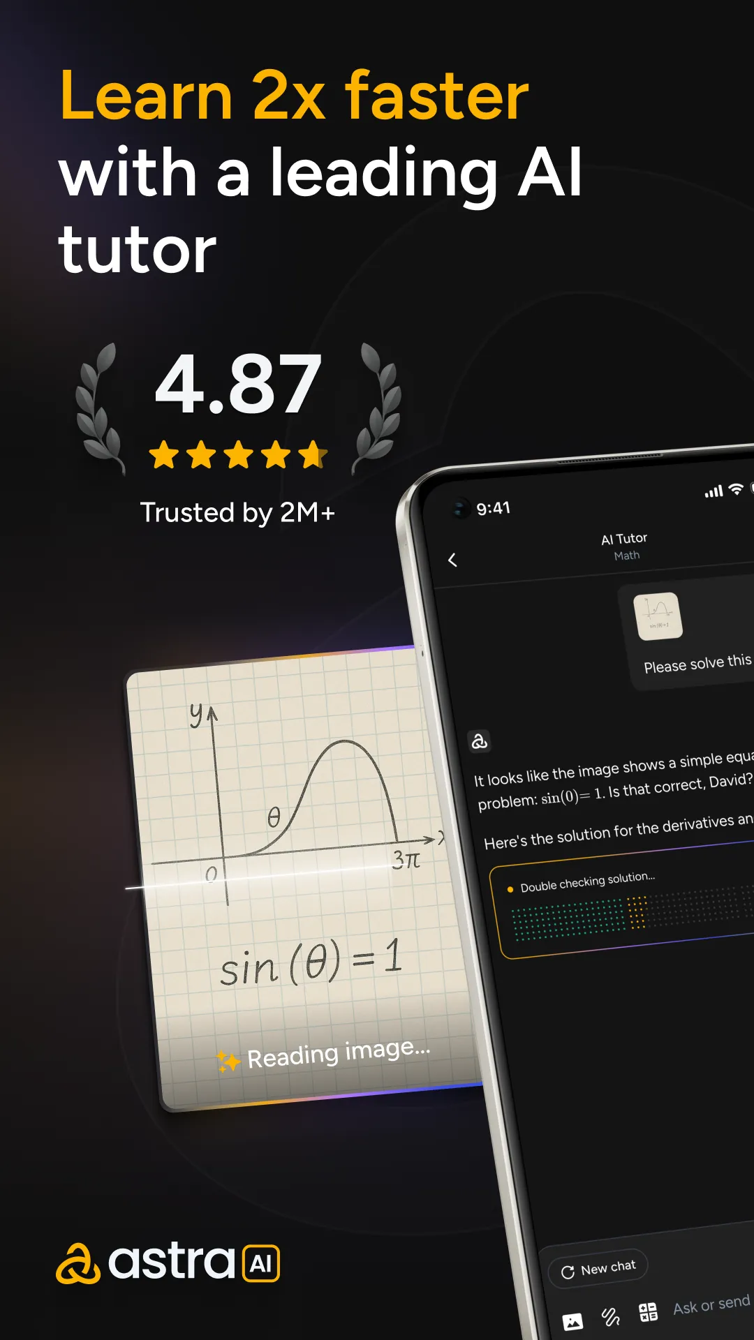Join over 2 million students enhancing their grades with Astra AI, the leading AI tutor providing personalized support in math, physics, chemistry, and beyond. Astra AI offers instant, step-by-step guidance tailored to your individual level, available anytime to adapt to your pace. Master your coursework with features like "Exam Prep" for targeted test readiness, "Solver Mode" for on-the-spot homework assistance, and "Socratic Mode" for in-depth subject exploration. This study app transforms how you learn, helping you achieve faster and smarter progress. Build a solid foundation in subjects including algebra, geometry, linear equations, chemical reactions, the periodic table, forces, and kinematics. ...