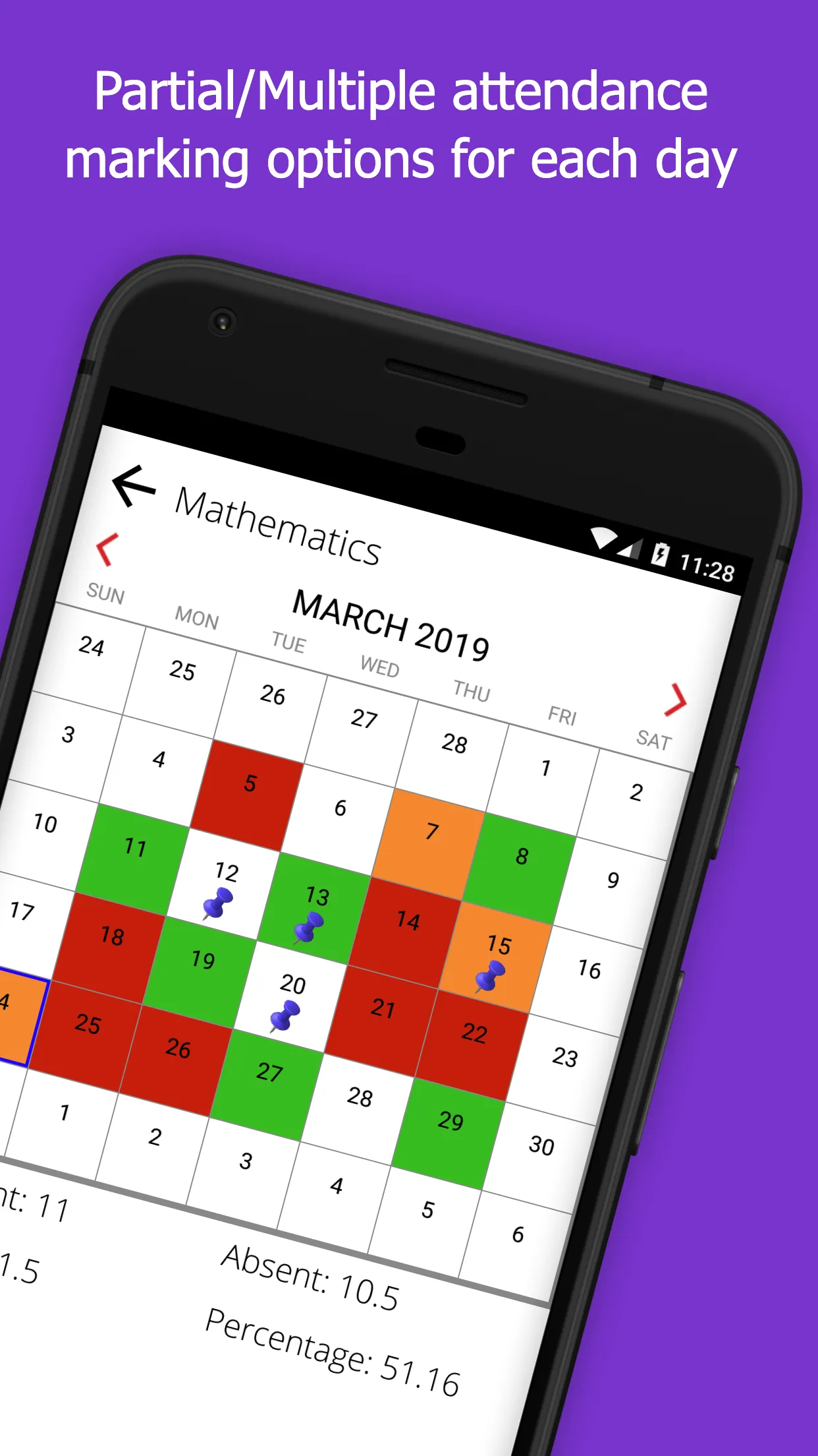***NEW: More than one (as well as partial) attendance can now be marked for each day. Also, Google Drive cloud backup.*** Attendance Register provides a simple and efficient way for students or anyone who wants to keep track of their daily attendance in various subjects/activities/jobs. Managing attendance is made easy with the help of a user-friendly calendar. Key features of Attendance Register are: ◆ A swipeable calendar for each subject in which the dates are colour coded according to the attendance...