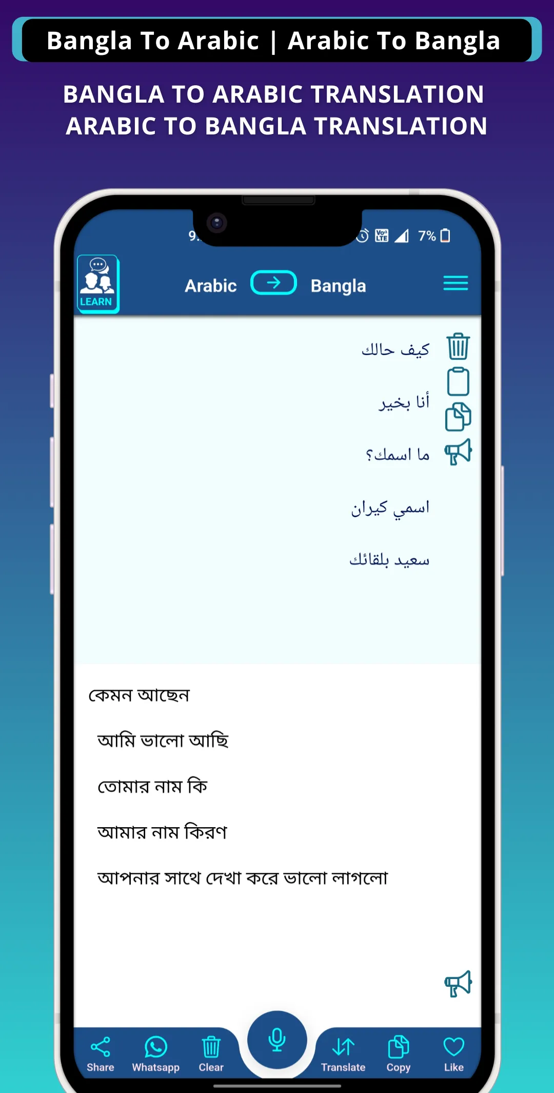 Bengali To Arabic Translation Arabic To Bengali Translation Learn Arabic from Bengali Learn Bengali From Arabic KEY FEATURES:...