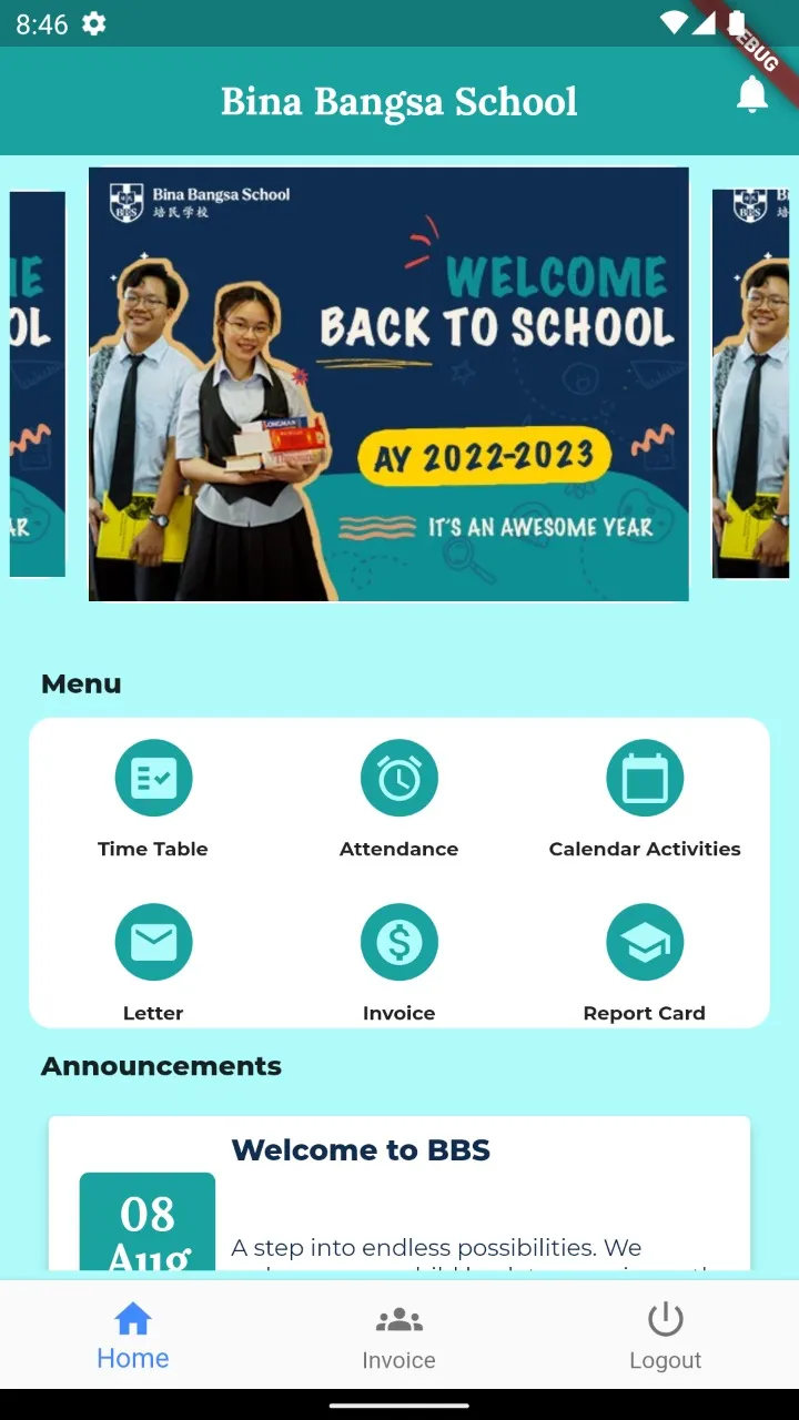 This mobile application is developed for BBS Parents from all 5 campuses (Jakarta, Bandung, Malang, Semarang and Balikpapan). Features includes: Attendance Monitoring, Access to Daily Activities, Upcoming Events, Test Schedule, Discipline Matter, Progress Reports, Extra Class, Discipline,Newsletter, Homework, Test Schedule, Letter and Messages. Only BBS registered parents can use this apps.
