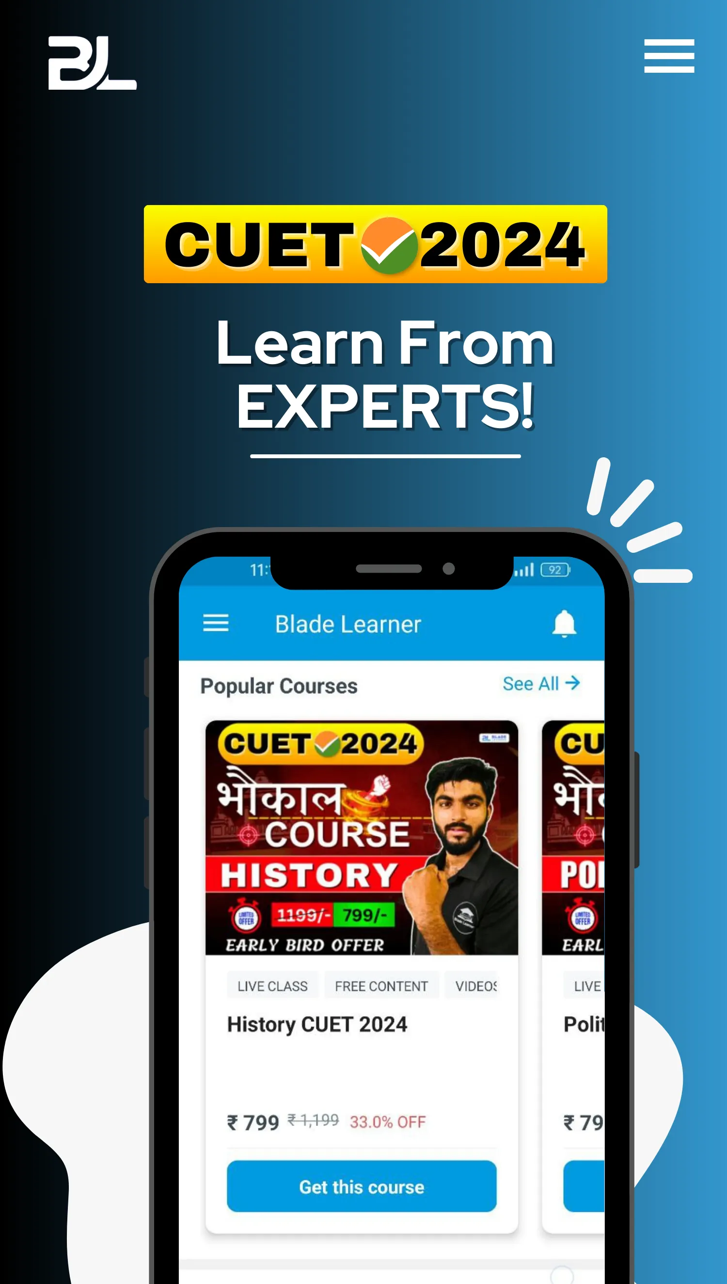 Welcome to Blade Learner-Humanities!π Where academic excellence meets transformative learning! Founded by passionate educators from BHU and JNU, Blade Learner is a revolutionary app designed to empower students aiming to excel in the Common University Entrance Test (CUET) and board examinations while nurturing a deep appreciation for humanities subjects. Blade Learner offers a comprehensive suite of resources meticulously curated by experts in the field to ensure thorough preparation for CUET. From immersive Study Materials π to engaging Courses π and realistic Test Series π, our platform covers every facet of the CUET syllabus, tailored to meet the diverse needs of humanities students. But our commitment extends beyond exam preparation. Blade Learner serves as a holistic support system for board exams, providing insightful study guides π, practice papers π, and test series to boost confidence and ensure success on the big day. ...