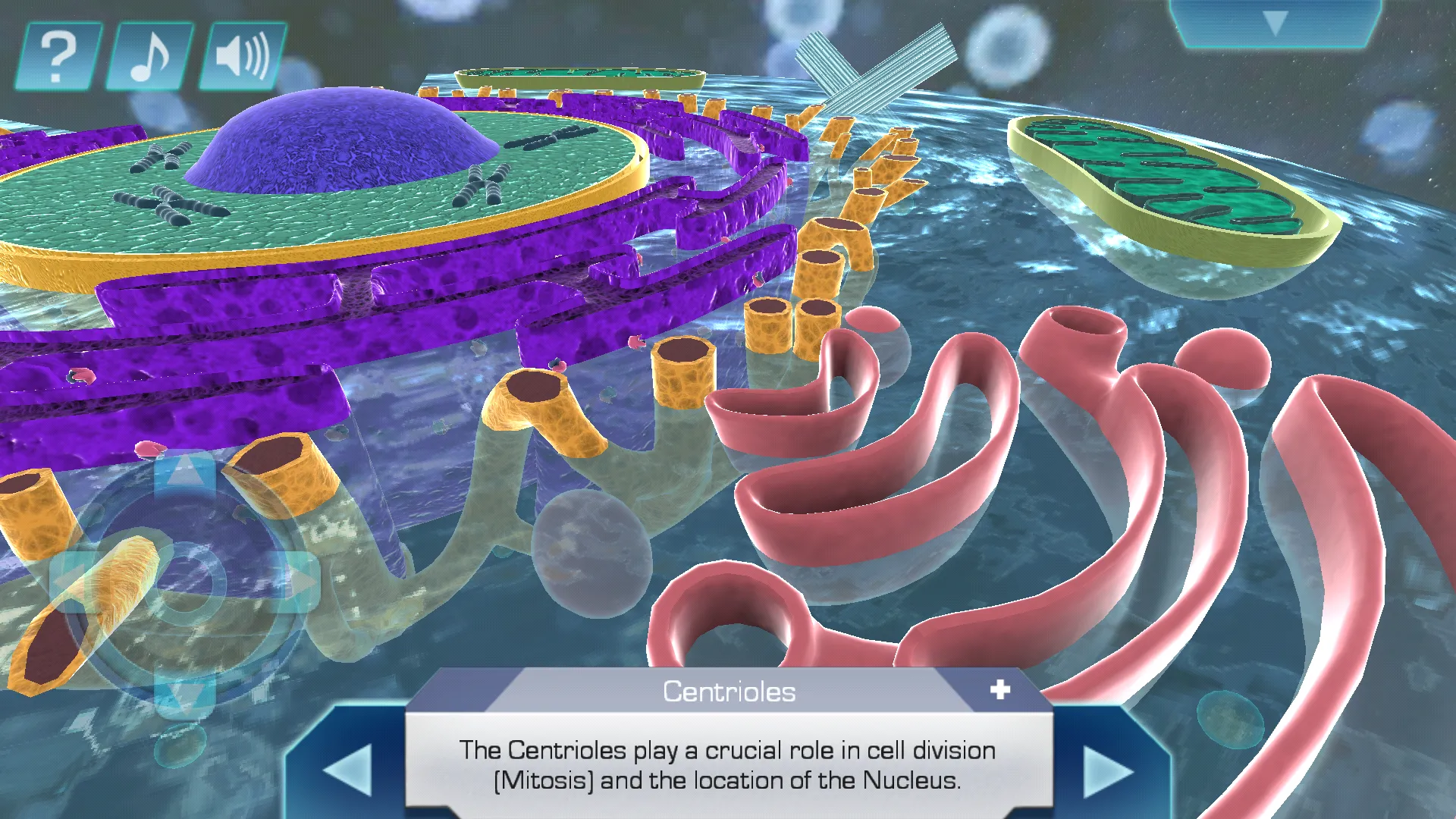 Enter the mysterious world of the cell. Travel through translucent blue cytoplasm and feel the hypnotic movement of the cell membrane. Discover the details of each cell part by navigating in game-like fashion to the Nucleus, Mitochondria, Ribosomes and more. Become immersed the in this amazing microcosm of nature and click to explore how this stunning and miraculous element powers the entire body.