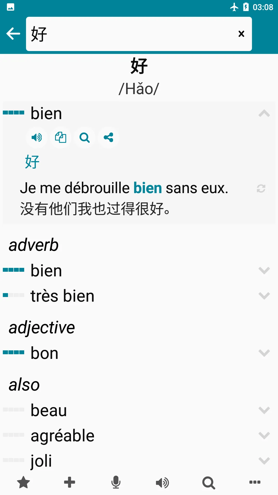 Save time and money while learning French / Chinese with this app. A quick dictionary, effective translation, frequently used phrase sentences, tests and games... Everything you need to learn French / Chinese quickly... Dictionary: • No need Internet connection. It works offline....