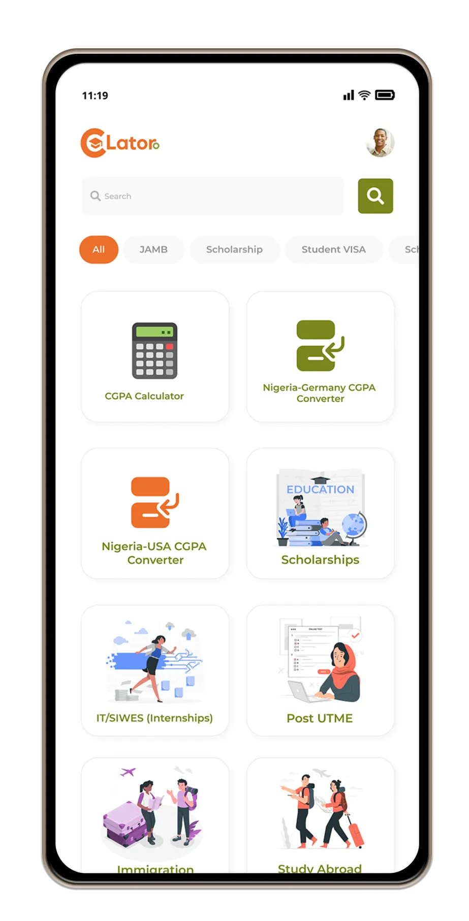 CLator is a CGPA calculator. In other words, it is a Grade Point Calculator app for all universities, polytechnics, and colleges that use the 4.0 and 5.0 CGPA scale systems. These schools include all Nigerian universities and polytechnics; African tertiary institutions; and any other college anywhere in the world where the 4 and 5 GPA systems are in use. CLator App is a straightforward, easy-to-use, and effective CGPA and GPA calculator. You can easily compute any number of subjects. This application assists students in calculating their CGPA (Cumulative Grade Point System). It stores your GPA every semester, and you only have to enter the scores for the new semester to get a current GPA or a Cumulative Grade Point Average. That is unlike other applications that make you re-enter your scores every time you need to do the calculation. ...