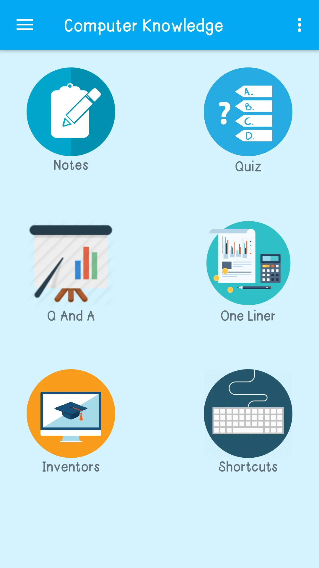 Computer General Knowledge app has general knowledge question and answers of all chapters of computer. Question and answers are given in sets. Each set has 10 questions and their answers. The question and answers are based on the following chapters. This application describe computer GK notes and MCQ in English language for competitive and other examinations like SSC, IBPS, SBI PO, SBI Clerk, Clerk, Railway exams, State Govt exams, IES, IAS, Admin services and etc. Application describe following type of information … * Computer GK Notes * Computer Question Bank * introduction of computer...