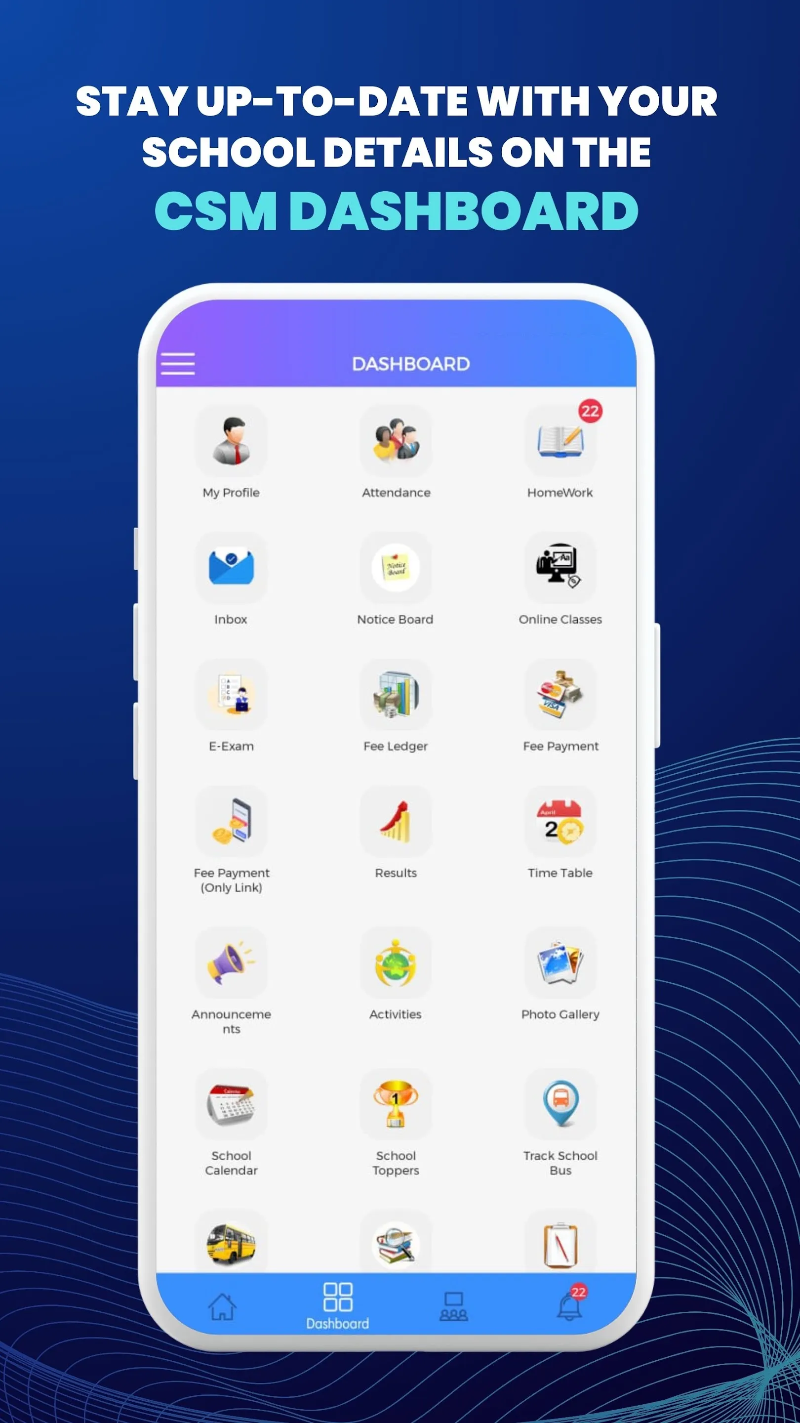 About Us: CSM - School Management Software Cyber School Manager (CSM) is your trusted partner in transforming the educational experience for both parents and students. CSM is a state-of-the-art school management app designed to streamline communication, enhance collaboration, and simplify the academic journey. For Parents: CSM is the one-stop solution to being close to your child's education. Knowing grades, attendance, and other assignments in real-time, you get to monitor your child's progress easily. With help from an easy-to-use interface, you'll never miss a vital announcement, events hosted by schools, or parental meetings. Our intuitive calendar and reminders make it very easy to be organized and balance your busy life with school activities. Here, at CSM, we believe in boosting a transparent and supportive setting, empowering you to be more engaged and involved in the child's academic success. ...