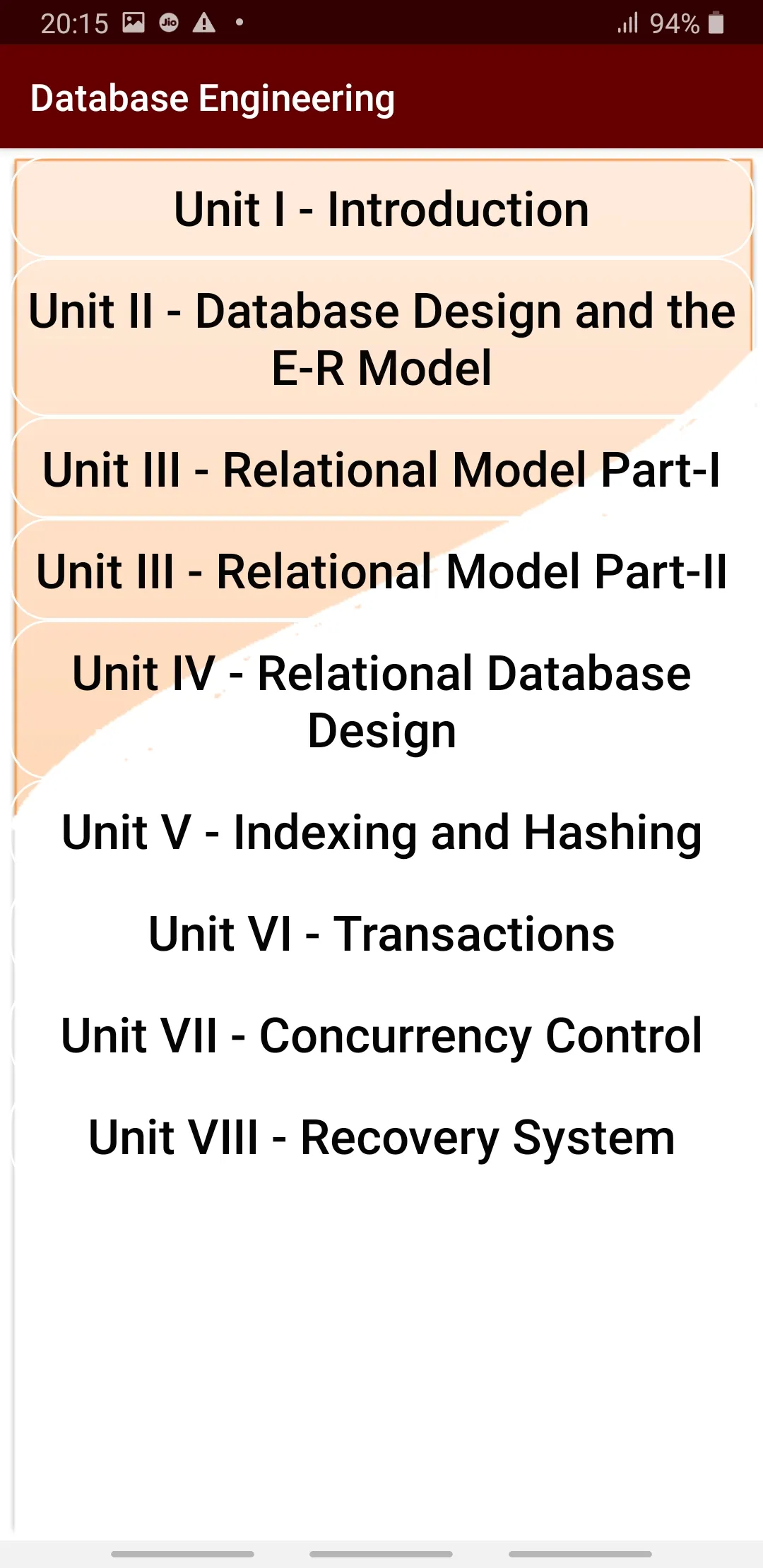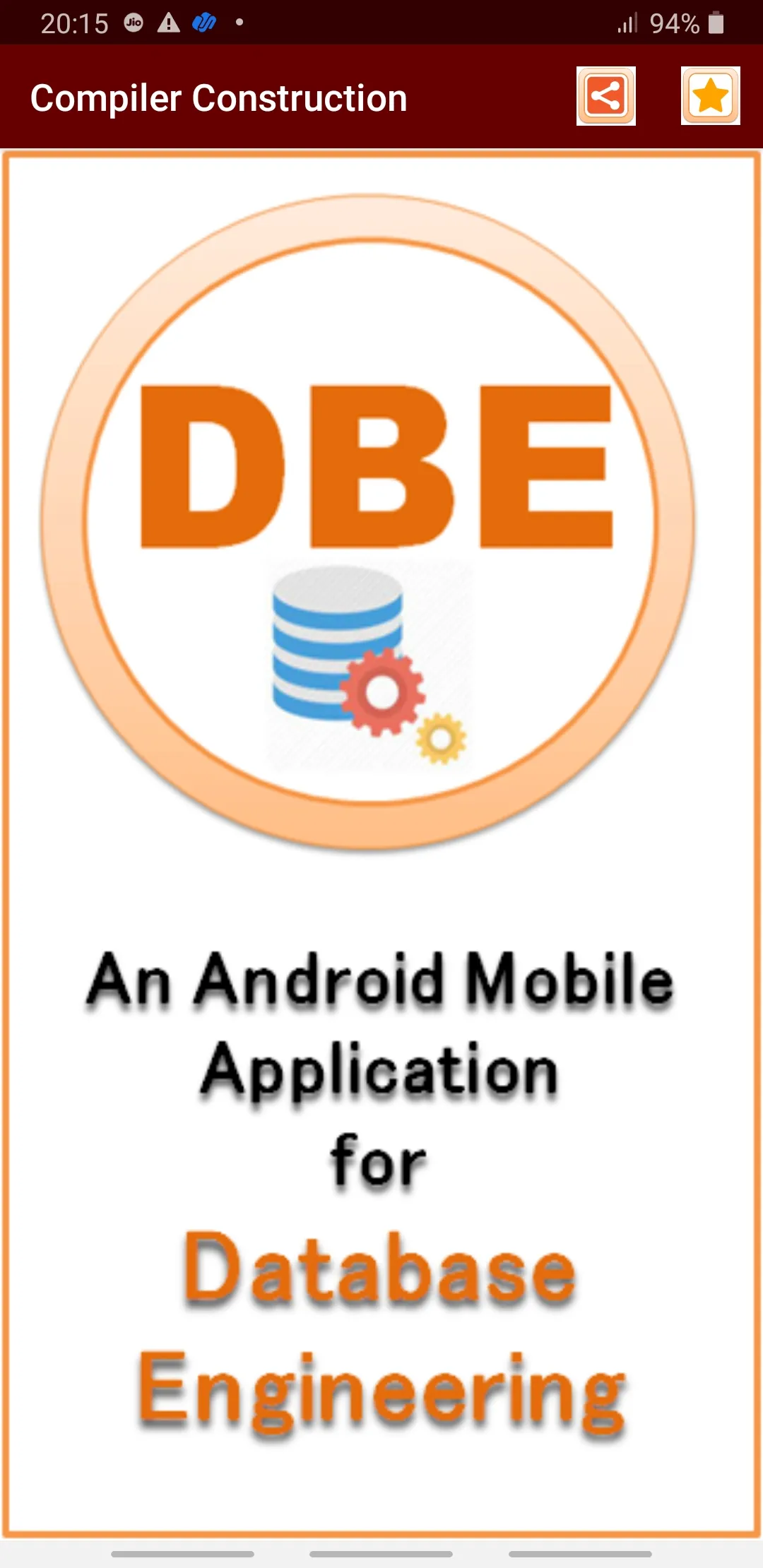DBE – An Android Mobile App for Database Engineering DBE is an Android Mobile Application for the course "Database Engineering". This app is developed by Mrs. Sunita Milind Dol (e-mail ID: [email protected]), Assistant Professor at Walchand Institute of Technology, Solapur. ...