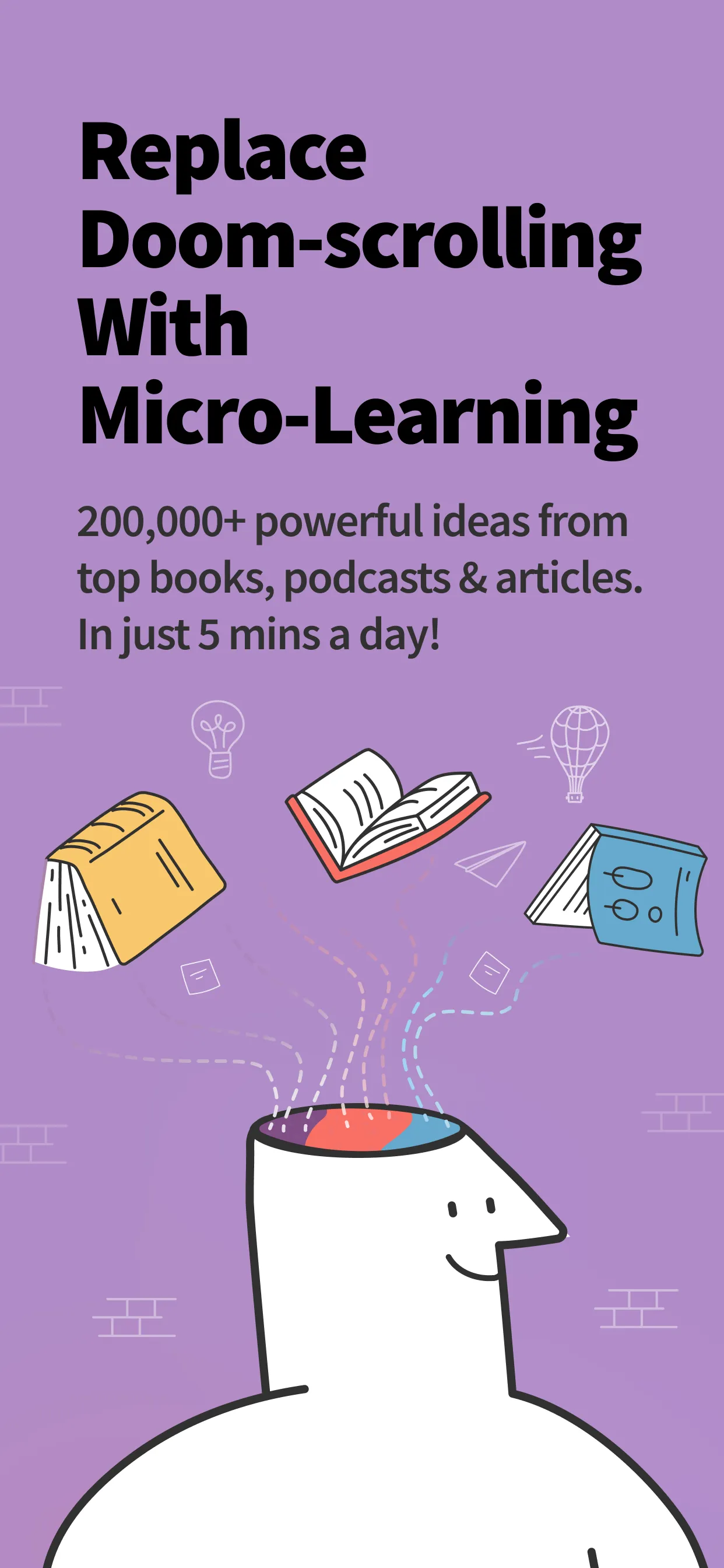 Learn something new in just 5 minutes, with unlimited daily access to 200,000+ powerful ideas from top books, articles, podcasts, videos and more, in just 4 easy steps: Stop Scrolling Social Media ⇨ Download Deepstash ⇨ Use it for 5 min/day ⇨ Become the smartest in the room. Join 3 Million+ smart people to discover new ideas, learn new things, improve yourself and inspire others. ...