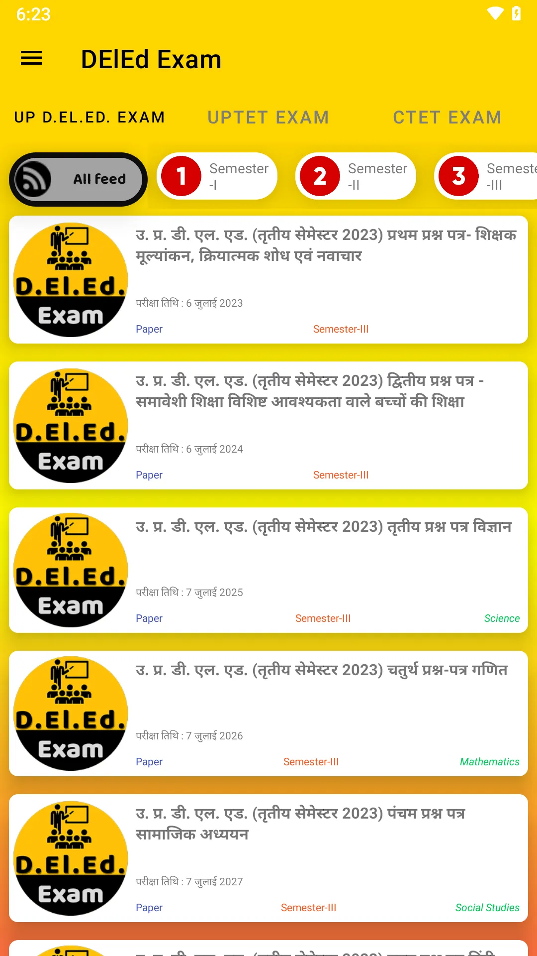 Study material for Uttar Pradesh Diploma in Elementary Education (D.El.Ed.) [ 2 year-4 semester] * Previous year papers (Solved/Unsolved)of all semester. * Syllabus of all semester. * Exam oriented Notes. * Previous years paper Topic-wise * Regular MCQ Based Test Series (Multiple Choice)...