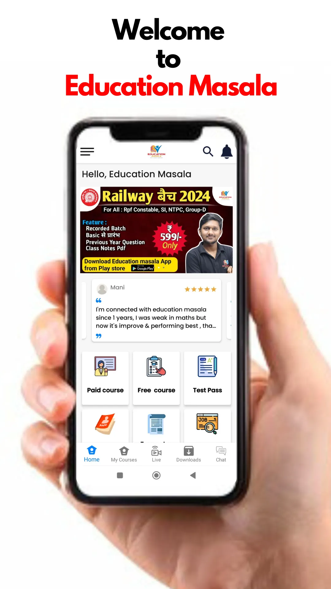 Education Masala is an Online Learning App to help students prepare for variety of Exams. Students can learn with the help of Online lectures and Study Materials available on the App.