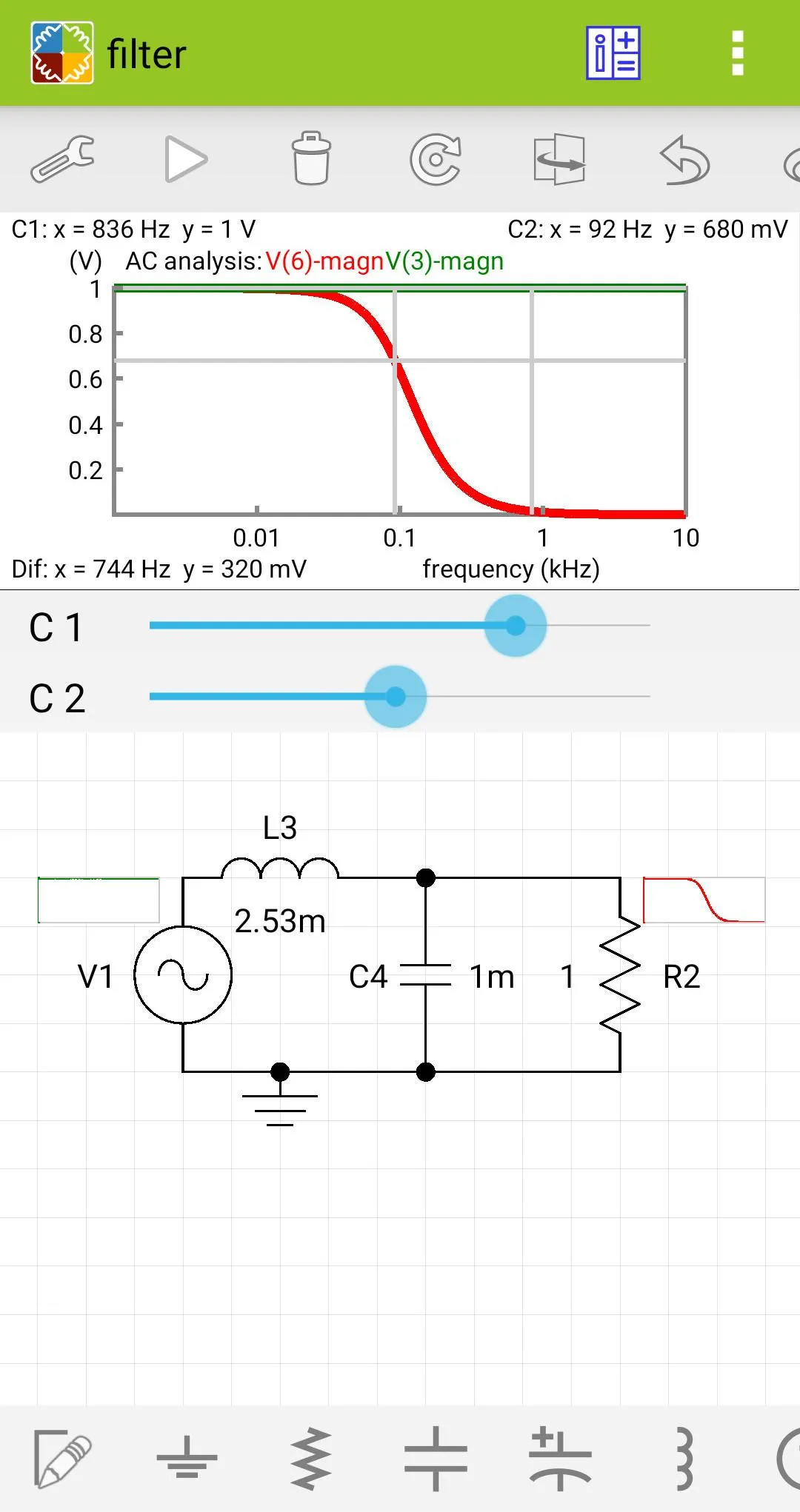 Electric Circuit Studio is a set of tools used for building electronic circuits, SPICE simulation, and calculation of circuits. These tools are complemented by the information center containing resources, connector pinouts and short interactive book explaining basic electrical theorems, laws and circuits. It is a useful application for all electronics hobbyists, students, or other people with an interest in electronics. • Schematic editor and SPICE simulator These tools allow easy creation of circuit diagrams and SPICE analysis of the created circuits. The simulator is focused on visual representation of simulated results, such that simulated voltages and currents can be placed elsewhere in the circuit, as a text or graph. Moreover, the magnitude and polarity of voltages and currents can be represented by visual indicators, so you can check the results quickly. All results can be additionally displayed on the top plot, where they can be explored using two cursors. DC, AC and Transient analyses are supported....