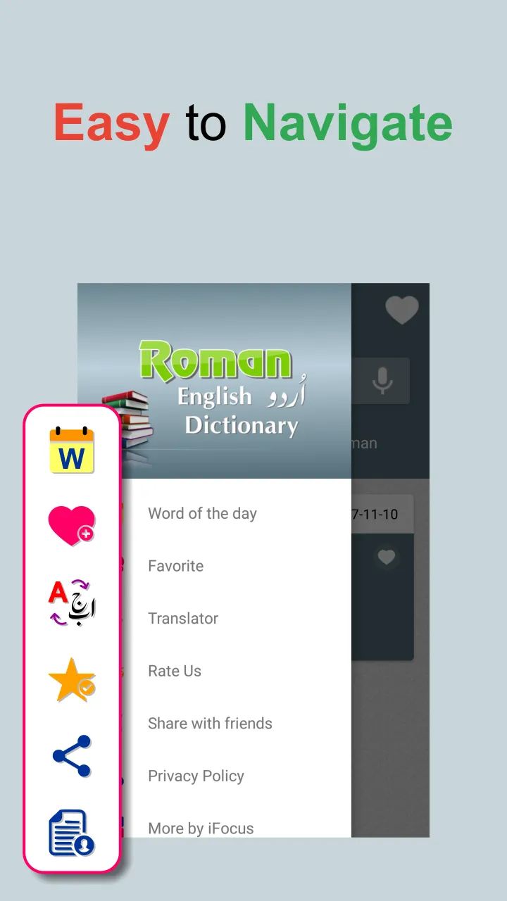 Are you studying English or Urdu and want to know the meaning of a word with Roman pronunciation so this app is best to help you with huge collection of English and Urdu words with Roman pronunciation, synonyms, antonyms and examples with translation. اردو سے انگریزی اور انگریزی سے اردو ڈکشنری English Urdu Roman Dictionary is a learning application, designed to facilitate the Urdu speaking users who are keen to learn English to Urdu translation and pronunciation. The English To Urdu Dictionary contains 300,000+ words with Free Multilingual Paragraph Translation. No need for Internet, works completely offline. ...