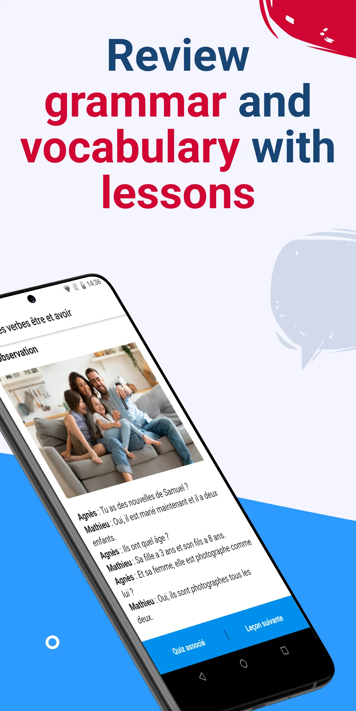 As a result of a partnership between Learning Vibes and Digischool, the mobile application superFLE - an "all-in-one" companion - allows you to revise, to dive deep your knowledge on grammar, conjugations and vocabulary and to train efficiently for the FLE tests and certifications (DELF and TCF), doesn’t matter your level (A1, A2, B1 and B2 of the CEFR). The app’s strengths : - more than 400 complete lessons with dialogues to listen to and examples to understand grammar rules, conjugation and learn vocabulary - over 1200 activities with corrections and detailed explanations - training and simulations for the DELF A1, A2, B1, B2 and the TCF...