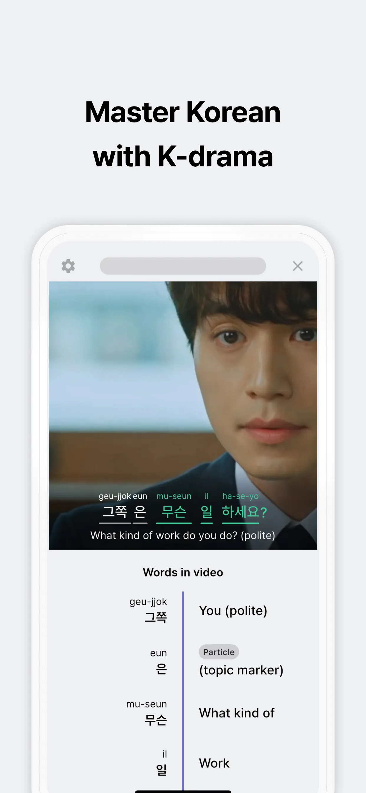 Learning Korean with video clips is like playing fun korean games! Want to use korean language more in your daily life? Looking to engage in conversations from casual to high-level? At Ganada, you can learn korean with sentences useful for real-life situations. Our platform offers various lessons, videos, and quizzes to make korean learning easy and enjoyable. It's an immersive korean game designed to help you learn korean effortlessly. This is the best way to learn korean through a fun korean game that makes korean learning engaging....