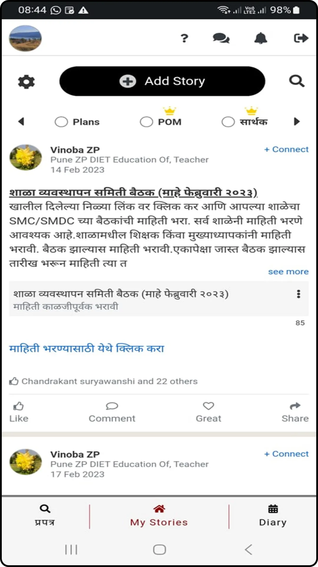 Pune Zilla Parishad has over 1,400 villages (gram panchayat). They are involved in various development activities in the village e.g. Child and women welfare, agriculture, health, animal husbandry, water, education etc.. Gram Vikas app simplifies the work of the Gram Sevaks, the Block Development officer and the district development authorities. The app helps to easily communicate across various layers of management and gather program feedback from the Gram sevaks. It also recognizes the efforts...