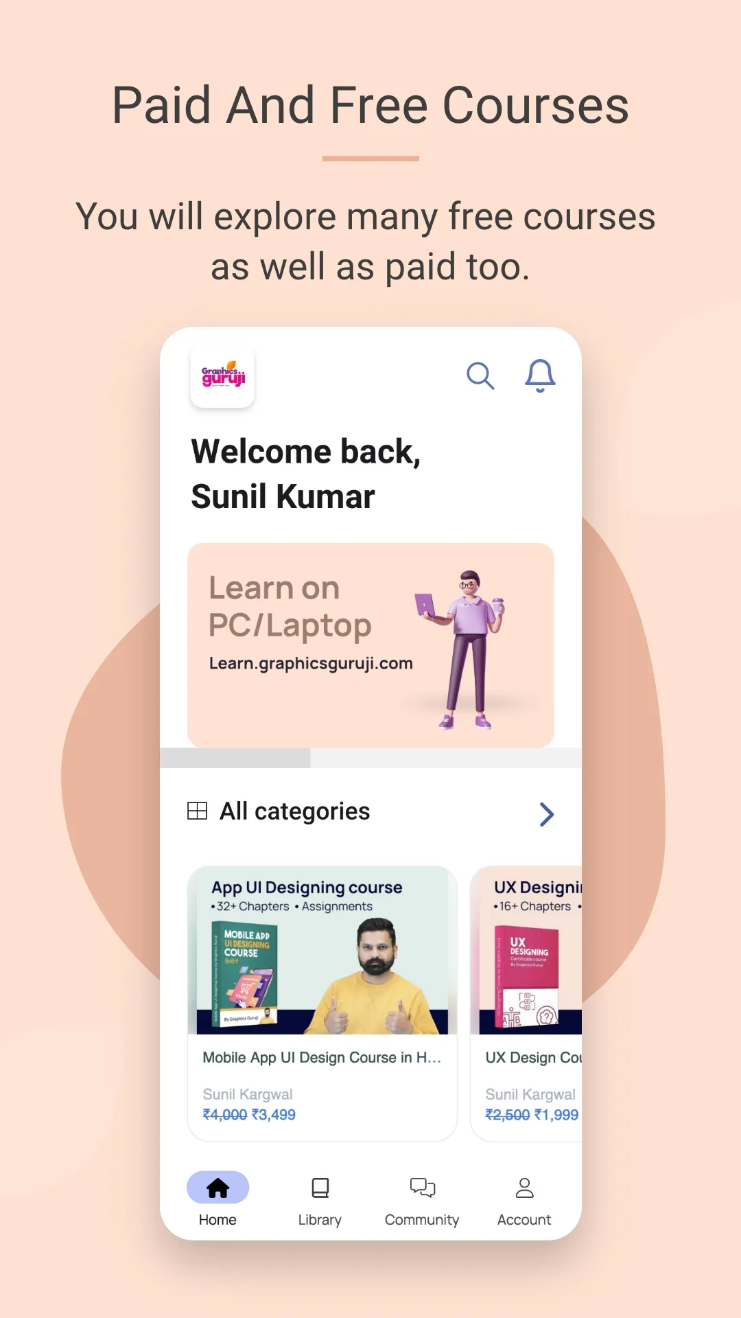 Start UI UX designing with Graphics Guruji. We have multiple courses: UX design course Mobile App UI designing course UX challenges course Fiverr learning course Enhance your designing skills. Our app integrates Zoom SDK to enable live classes and webinars, requiring the foreground service permission for seamless real-time interactions.