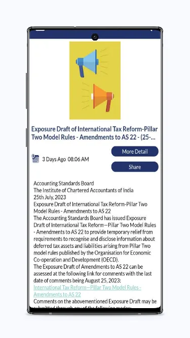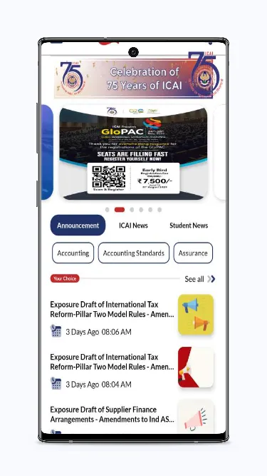The Institute of Chartered Accountants of India (ICAI) identified the need of Mobile Application for its stakeholders (Members, Students & Others). The ICAI’s Mobile Application brings you Key up-to-date Contents from its website (www.icai.org). This apps is designed and developed for Android iOS Devices. ICAI stakeholder may download mobile application and start using it without any additional cost, anytime, anywhere. ICAI presents ICAI Now Version 3.0 with New and Improved Features: • Registration of User on App • Mobile OTP based Login. • Login for all All stakeholders...