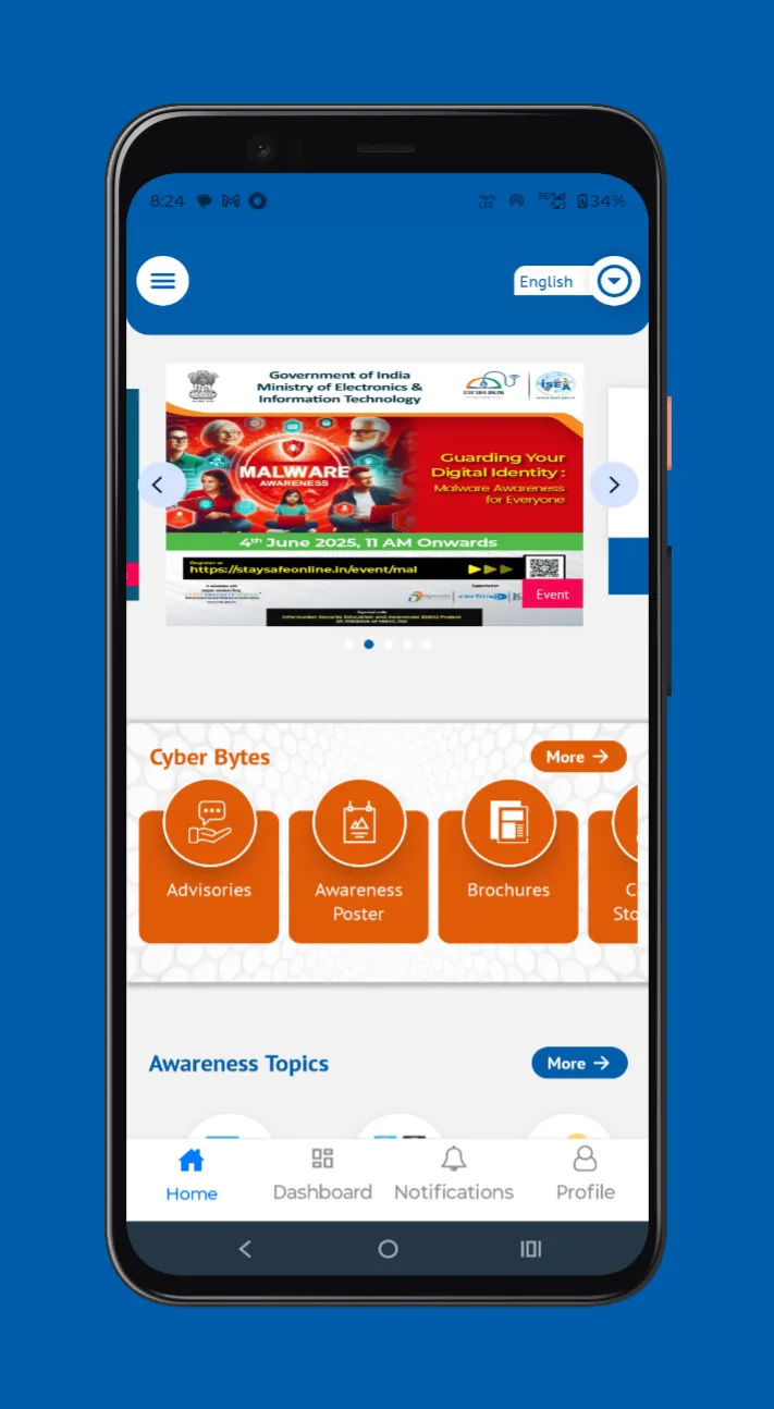 The mobile application is developed as part of its ISEA (Information Security Education & Awareness) project is an initiative by the Ministry of Electronics & Information Technology (MeitY), Government of India. The ISEA Project has been designed with a targeted approach for development of human resources for safe, trusted and secure cyber space. The project implemented through 50 premier academic institutions at National level. The Cyber Aware Digital Naagrik (Mass Awareness) program, within I...