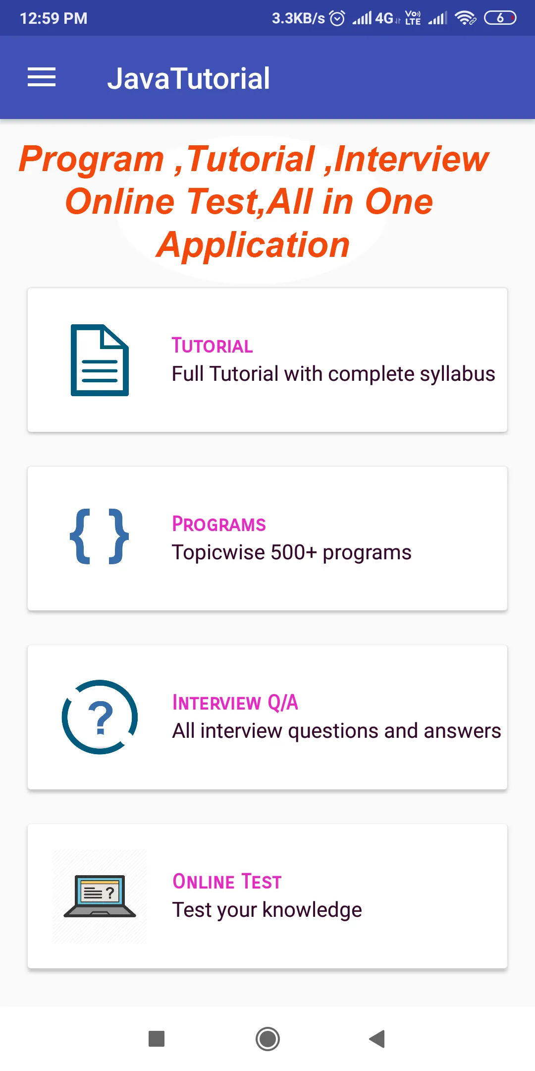 *** Unique Features *** 1.Interactive User interface 2.Neat and clear layout for better visibility 3.Search option available on all pages 4.Many programs with clear output 5.Topic wise Programs...