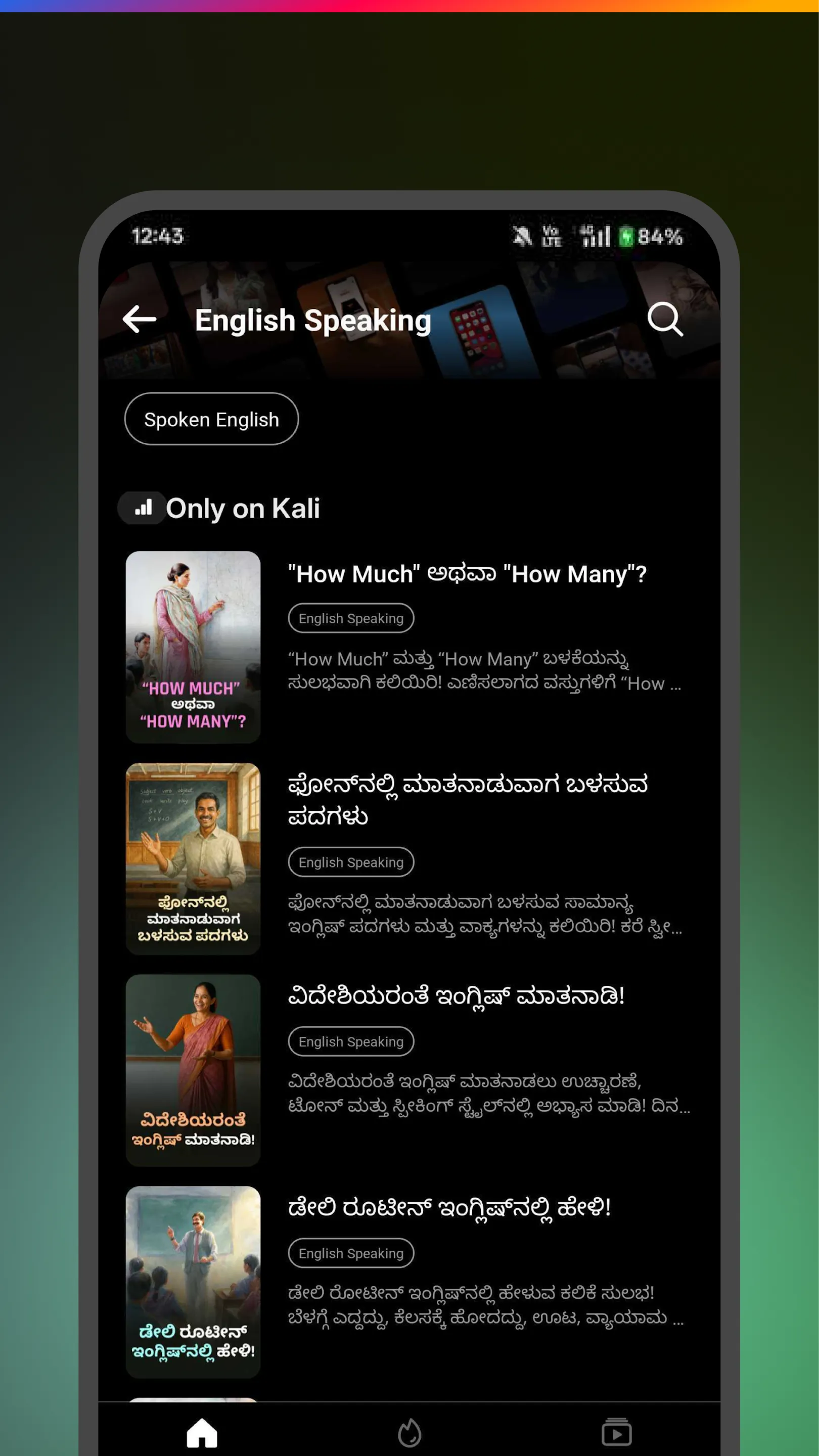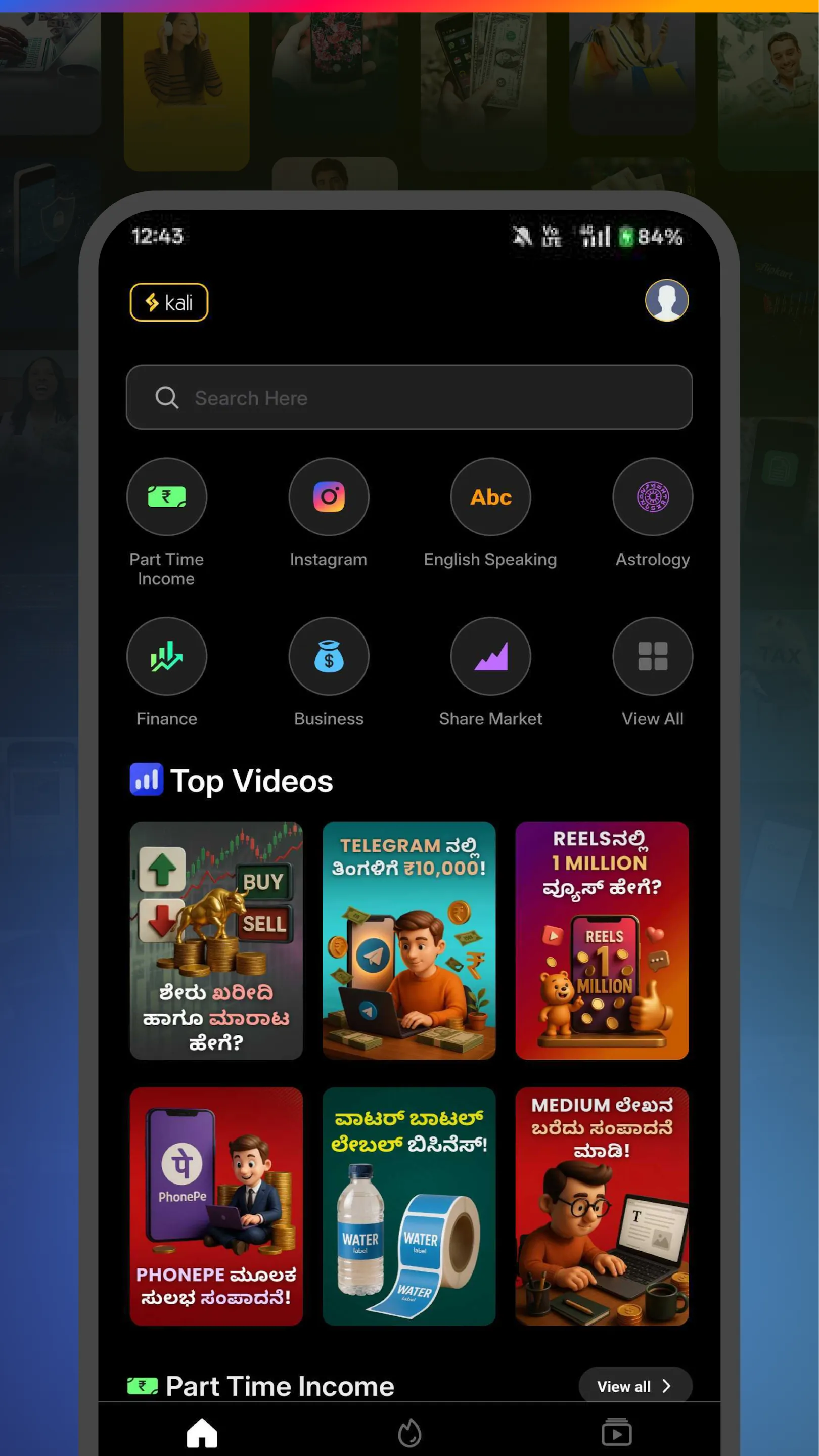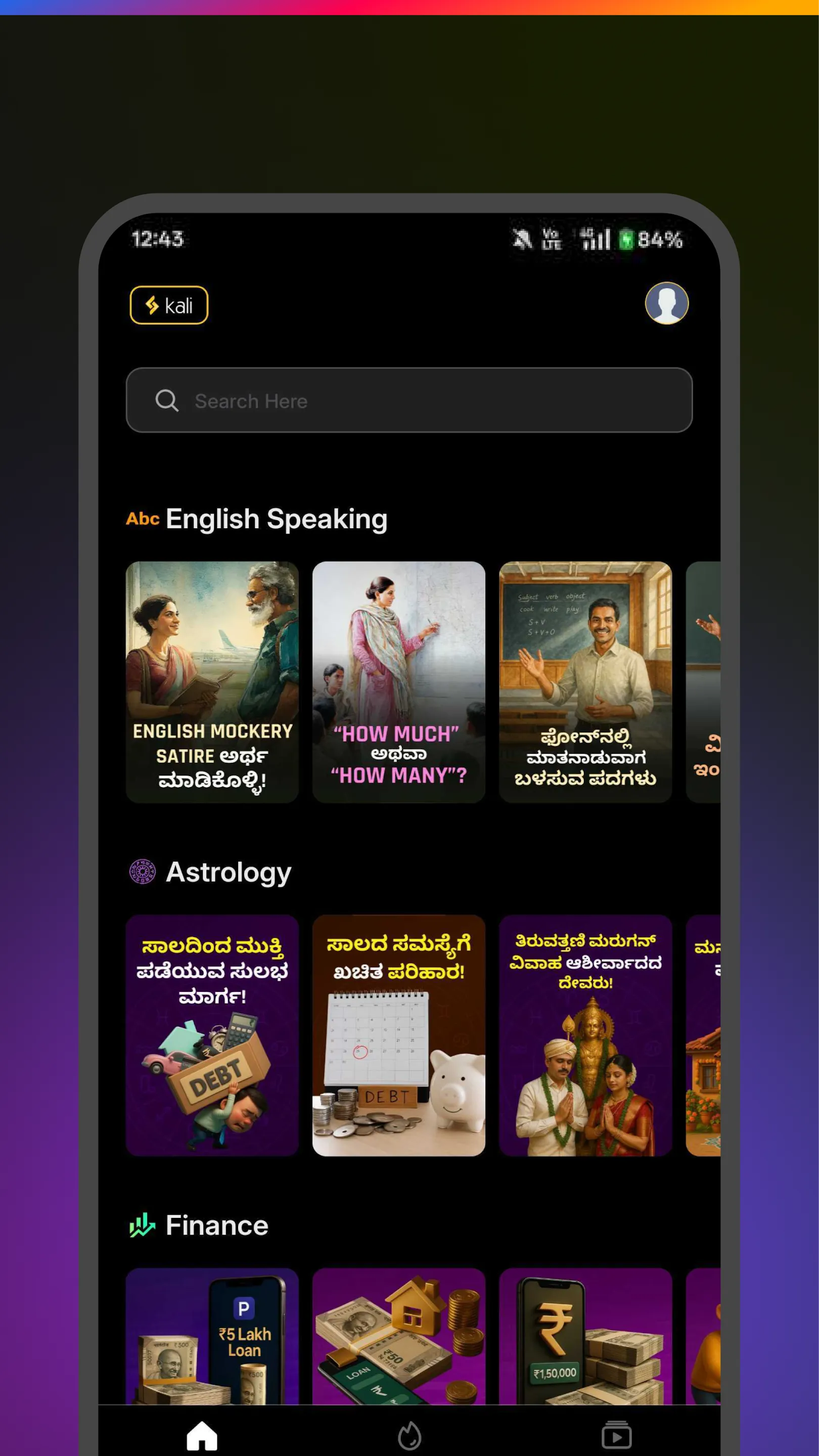 Kali is a Kannada Edutainment OTT platform offering daily short learning videos across multiple categories such as English Speaking, Part-Time Income, Astrology, Business Skills, Life Skills, and more. Our expert-led content is designed to be simple, engaging, and practical, perfect for anyone who wants to learn something new every day in just a few minutes. Key Features Daily New Videos – Fresh, short learning videos uploaded every day. Expert-Curated Content – All videos are created and reviewed by Kali Experts. Multiple Learning Categories – English learning, communication skills, financial basics, astrology insights, productivity tips, small business ideas, and more....