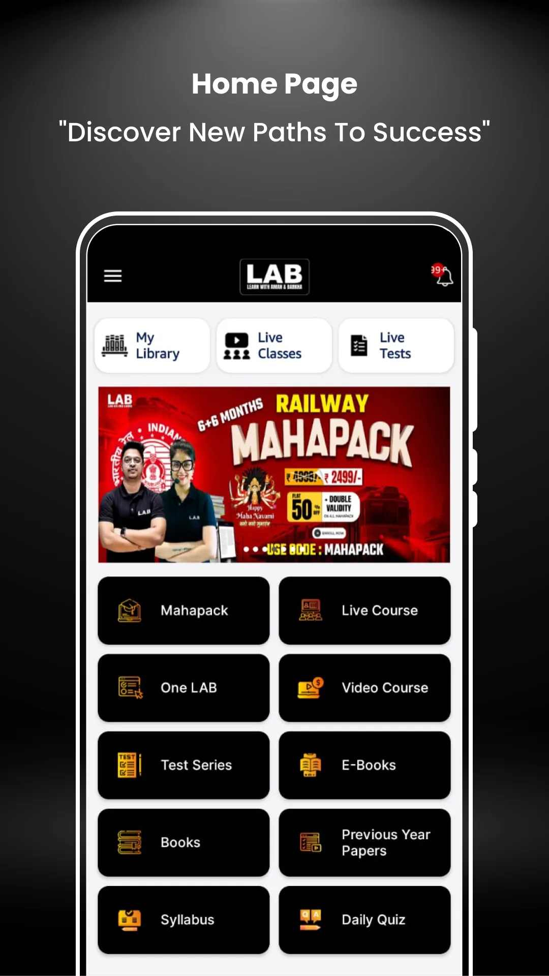 Welcome to LAB, a premier educational platform in India, dedicated to empowering aspirants for one day exams. At LAB, we combine quality, affordability, and expertise to create a learning environment that not only educates but inspires. Interactive Learning: Engage with interactive lessons that make learning dynamic and enjoyable. Customized Study Plans: Tailor your study schedule with our personalized learning paths. Regular Assessments: Track your progress with regular tests and quizzes, designed to simulate exam conditions. Resource-Rich Content: Access a vast library of study materials, notes, and video lectures, all at your fingertips. 24/7 Support: Get round-the-clock assistance and doubt-clearing from our dedicated support team, ....