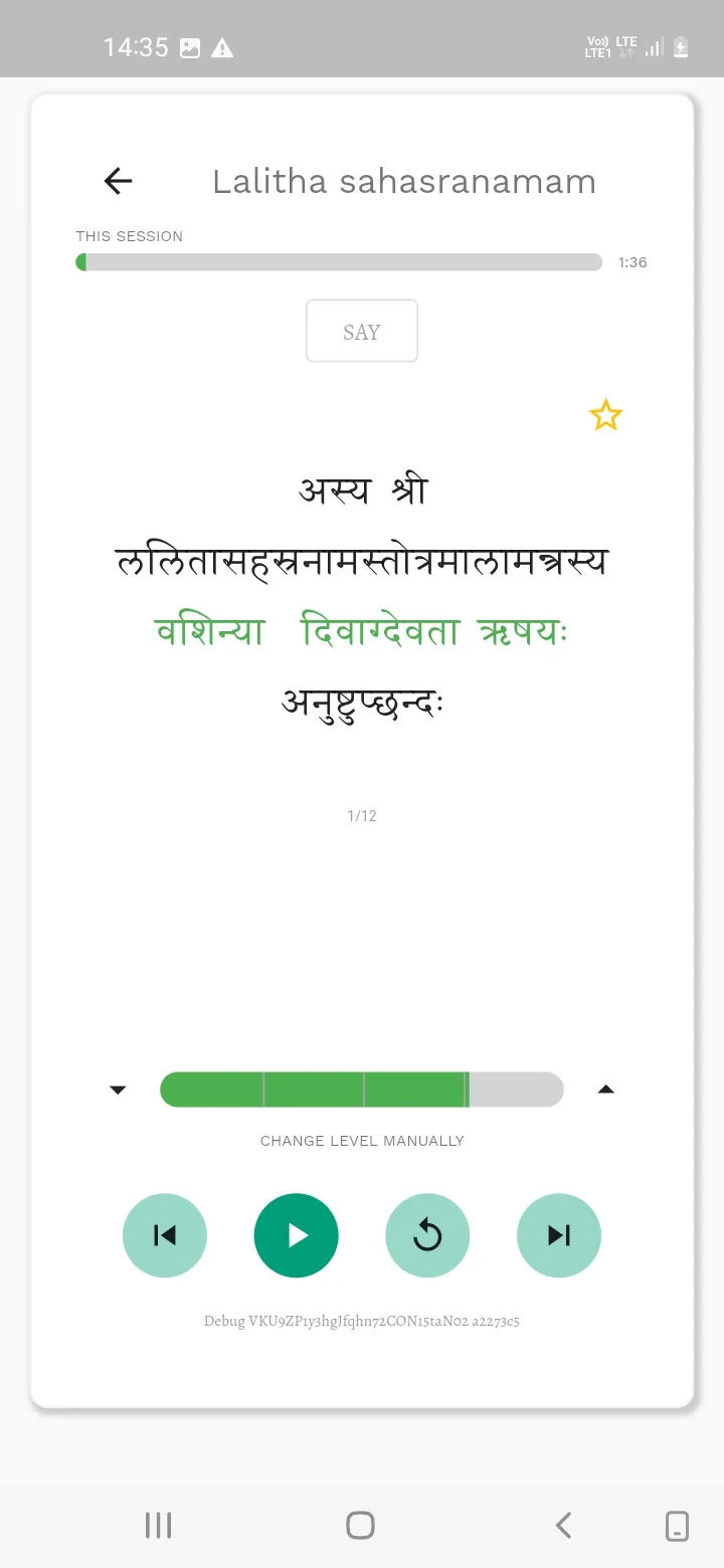 Lalitha Sahasranamam is an important and most revered hindu scripture. The 1000 names of goddess Lalitha devi have great meaning hidden inside them. Our app helps to learn the scripture in a scientific and systematic way. The app breaks up the entire scripture into small lessons. Learn each lesson by reciting phrases after an authentic recording with perfect pronunciation. As you practice more, the phrases get longer to keep you learning. Available with Lalitha Sahasranamam text transliterated i...
