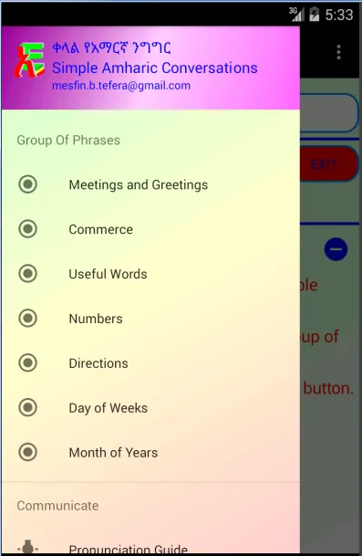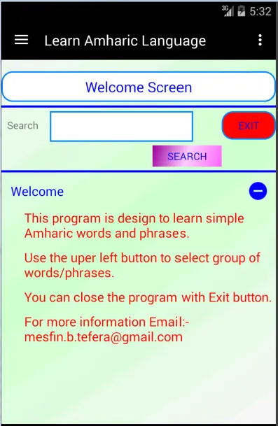 This App is more applicable to short time visitors especially Tourists who want to interact to the locals using the Amharic language. Common words, numbers, greetings, months, etc are included.