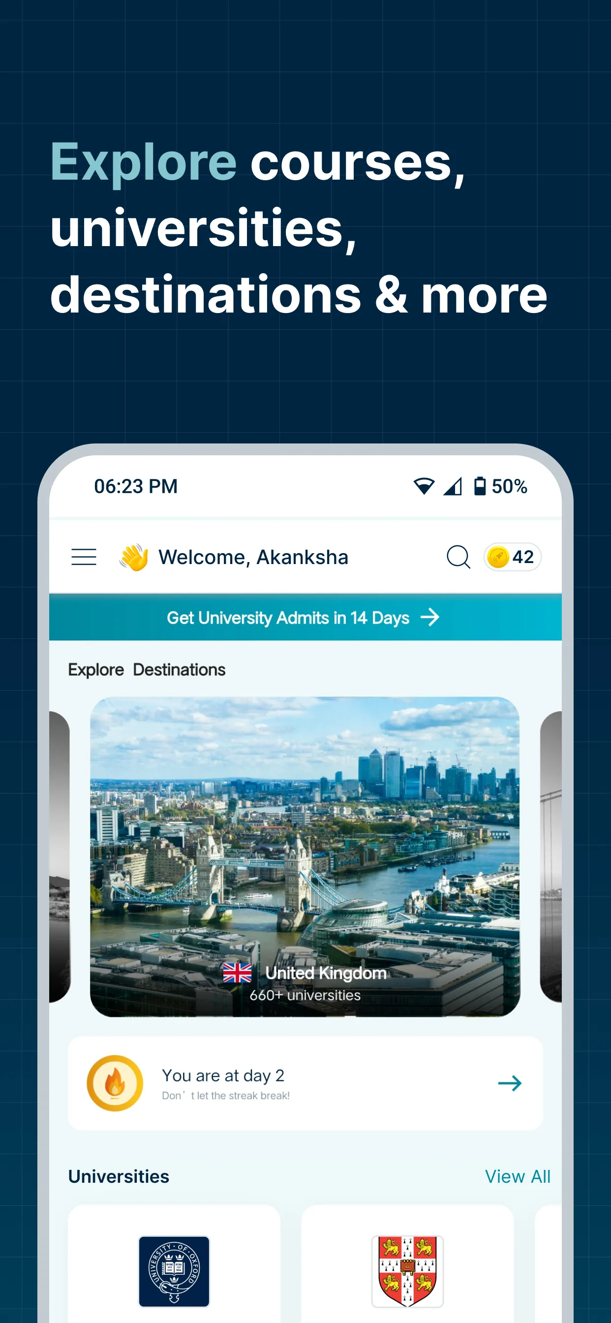 A world of opportunities awaits you, download the Leverage App and start your study abroad journey today * Discover universities and courses across the globe * Identify right-fit options using the AI Course Finder * Work with a coach through your end to end university admissions journey from applications till you reach your dorm room * Grow with the community of study abroad aspirants and offer holders * Meet university admissions representatives in UniConnect Virtual Fairs...