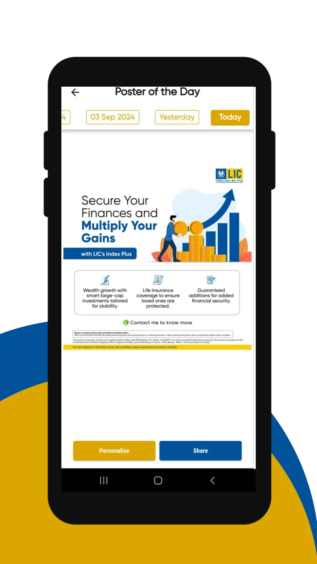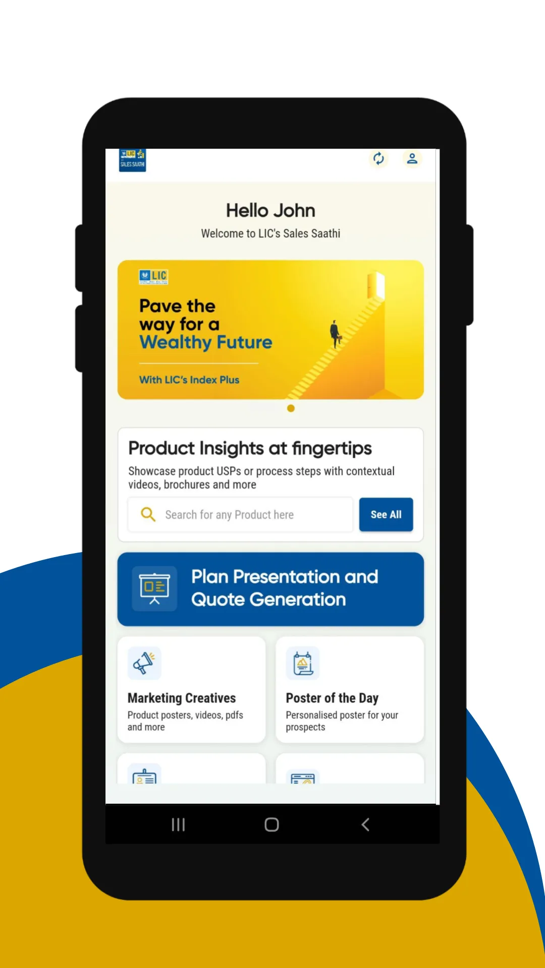Features include: 1. Create customized product presentations on the fly 2. Well designed marketing collateral which you can send out with the customer’s name on it 3. Regular new posters for better communication