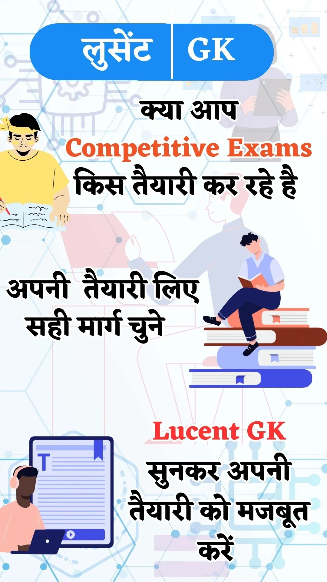 LISTEN ALL SUBJECTS OF LUCENT GK AUDIO BOOK 2024 IN HINDI. Lucent GK 2024 High Quality Online Audio Book App which helps to listen GK of all subjects Free in hindi anytime and anywhere. It is very helpful for Competetive Exams Which is conduct by SSC , Banks, Railway, State Exams like Uttar Pradesh, Bihar, Jharkhand GK etc. Chapters of this Book ✔️ इतिहास (History) ✔️ भूगोल (Geography)...