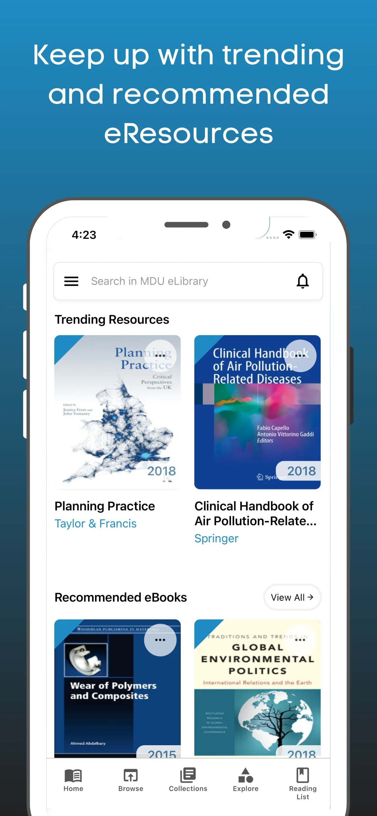MDU eLibrary App serves its users with mobile, on-the-go access to a massive collection of over 500,000+ eResources and information feeds including: - Top, peer-reviewed eJournals - 10000+ eBooks from world-class publishers - 1000s of open access resources from the web - Literature for leisure reading - News Updates - Expert Talks ....and a lot more.