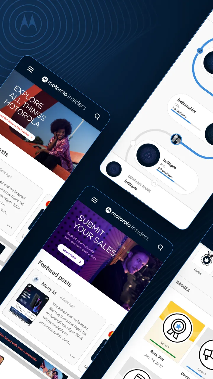 Motorola Insiders is a learning experience platform and online community for sales representatives who sell Motorola products. Here, you get access to the latest training materials and support resources to help you know our products. Whether you’re on-the-go, or on the sales floor, the Motorola Insiders App puts valuable resources at your fingertips to help you close the sale.