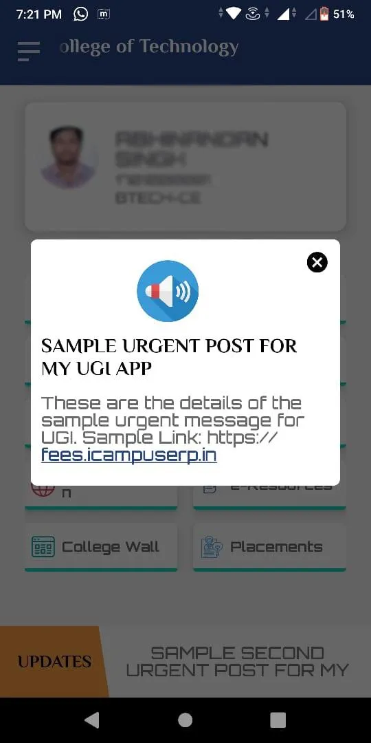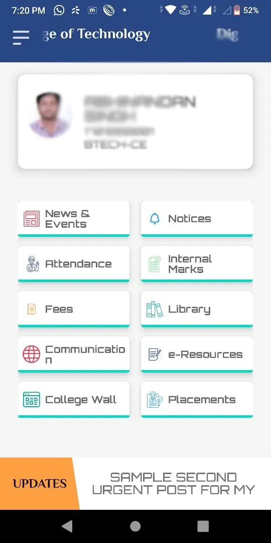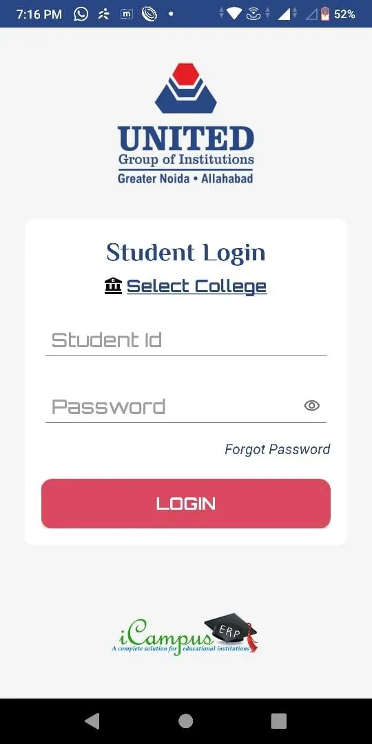My UGI is an integrated platform with all information related to students : their attendance, internal marks, library records, e-resources and much more. It also provides information related to events, placement activities, gallery etc. Any student can log in via his student id and allotted password for access to all features. New users can use forgot password to create their logins.